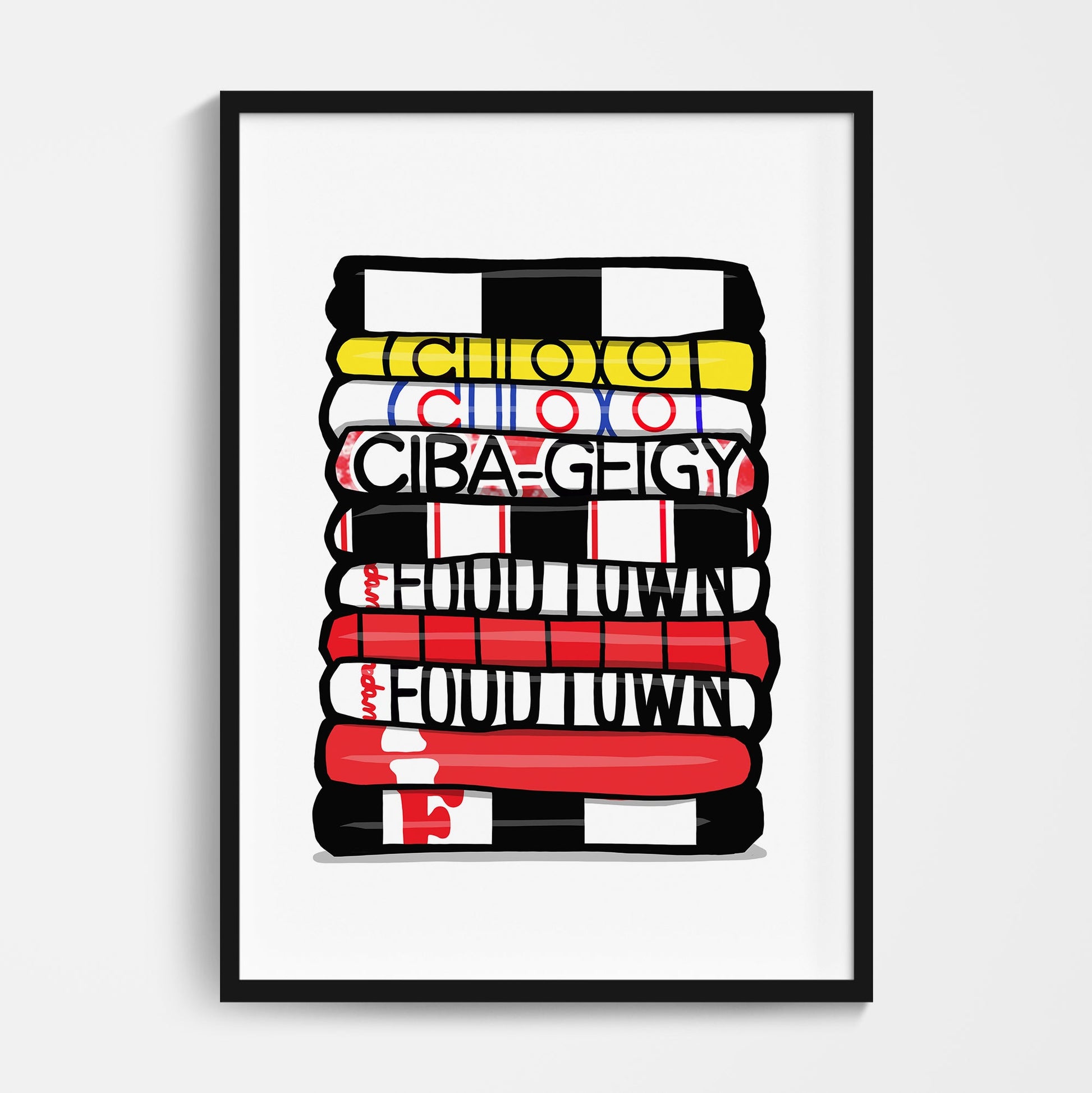 Original design featuring iconic classic retro football shirts on a quality poster.