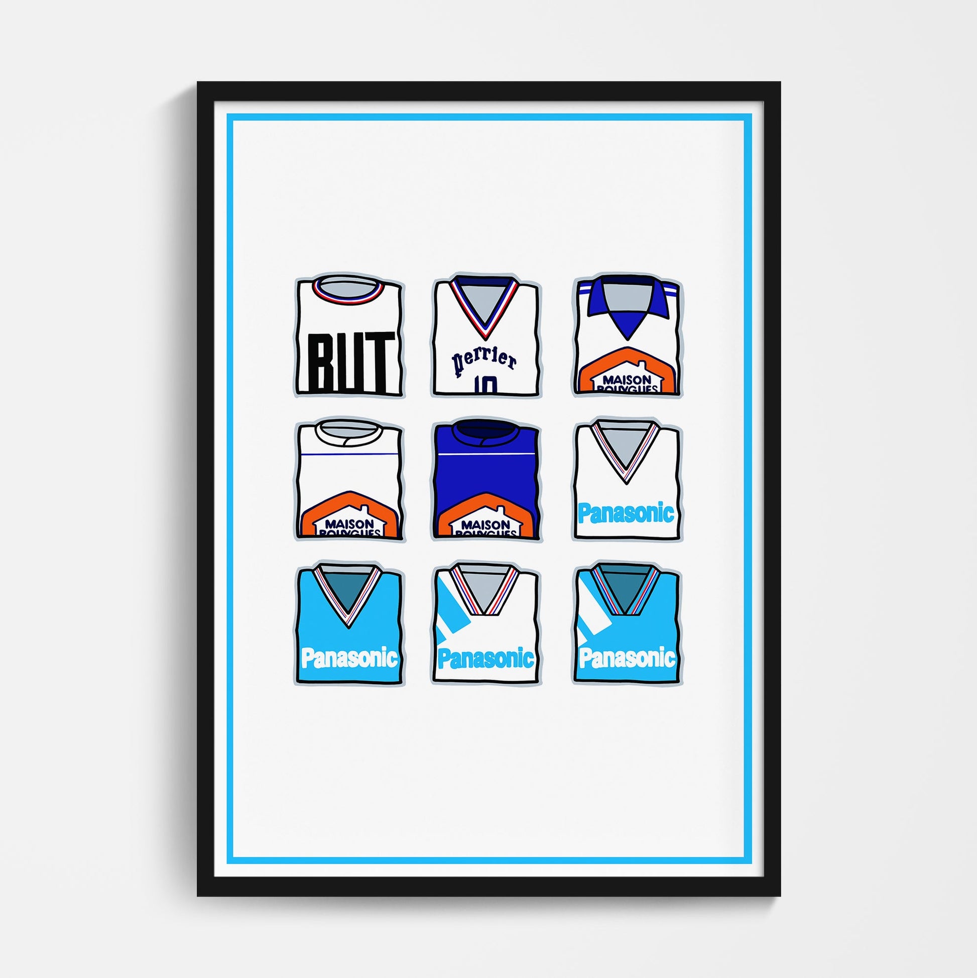 Original design featuring iconic classic retro football shirts on a quality poster.
