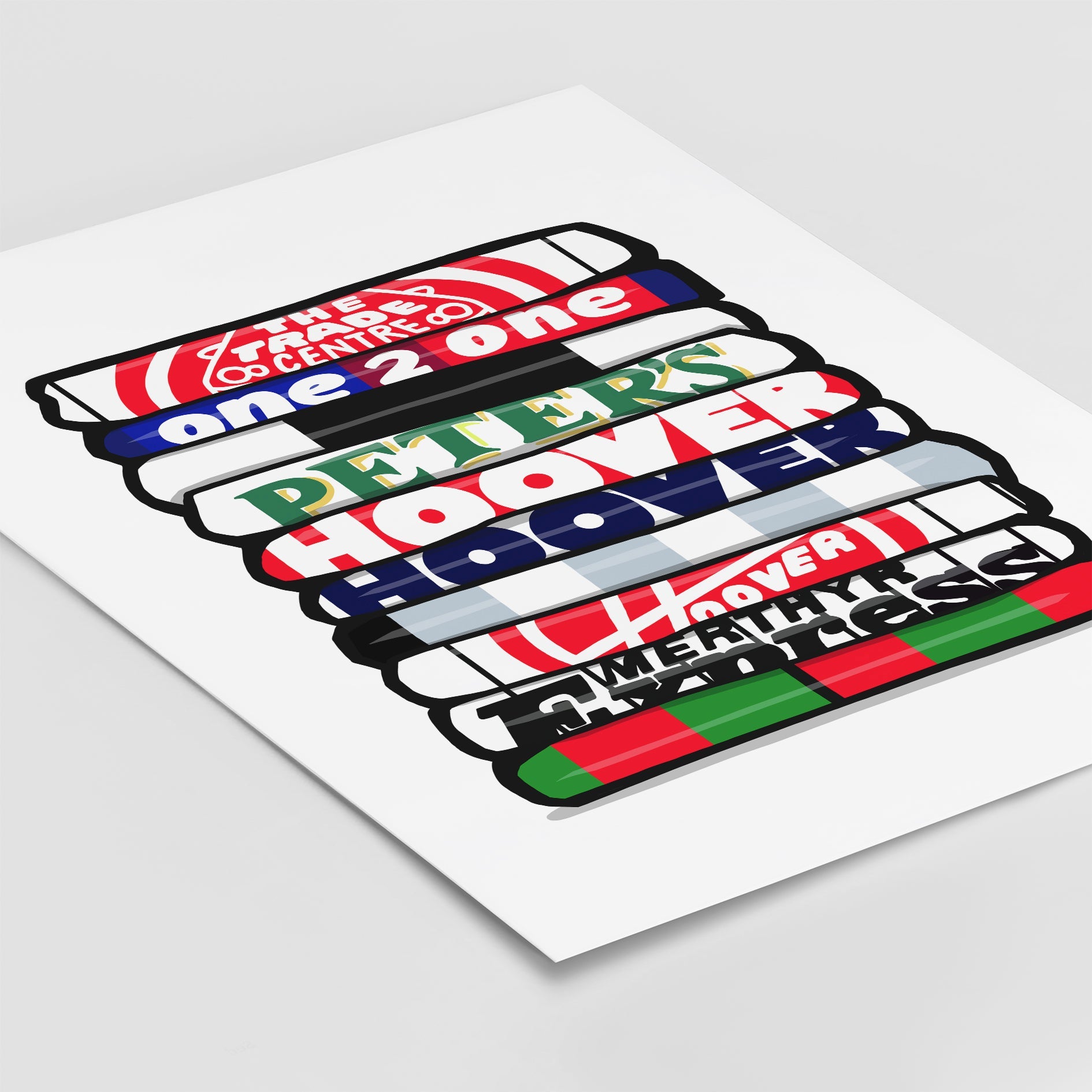 Original design featuring iconic classic retro football shirts on a quality poster.