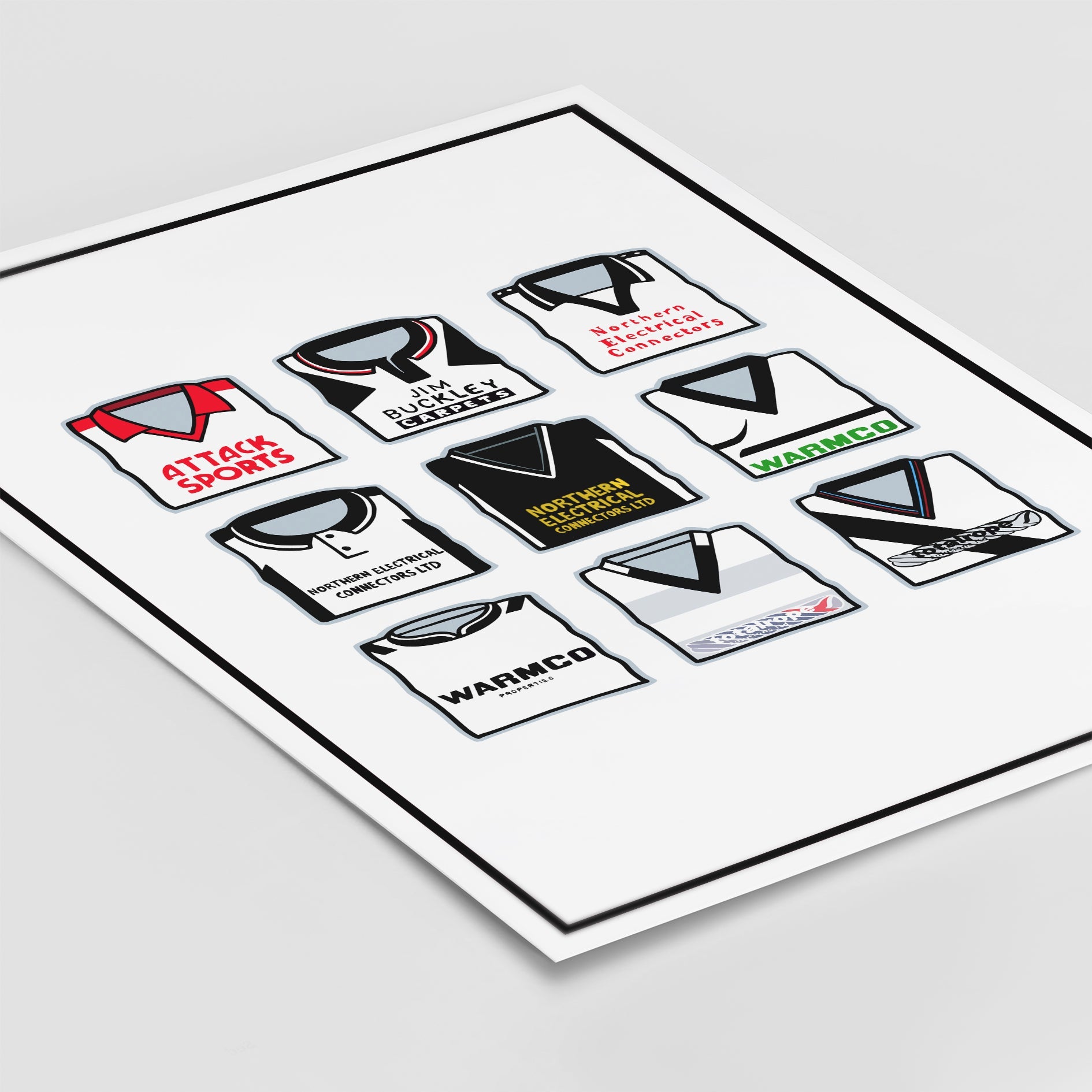 Original design featuring iconic classic retro football shirts on a quality poster.
