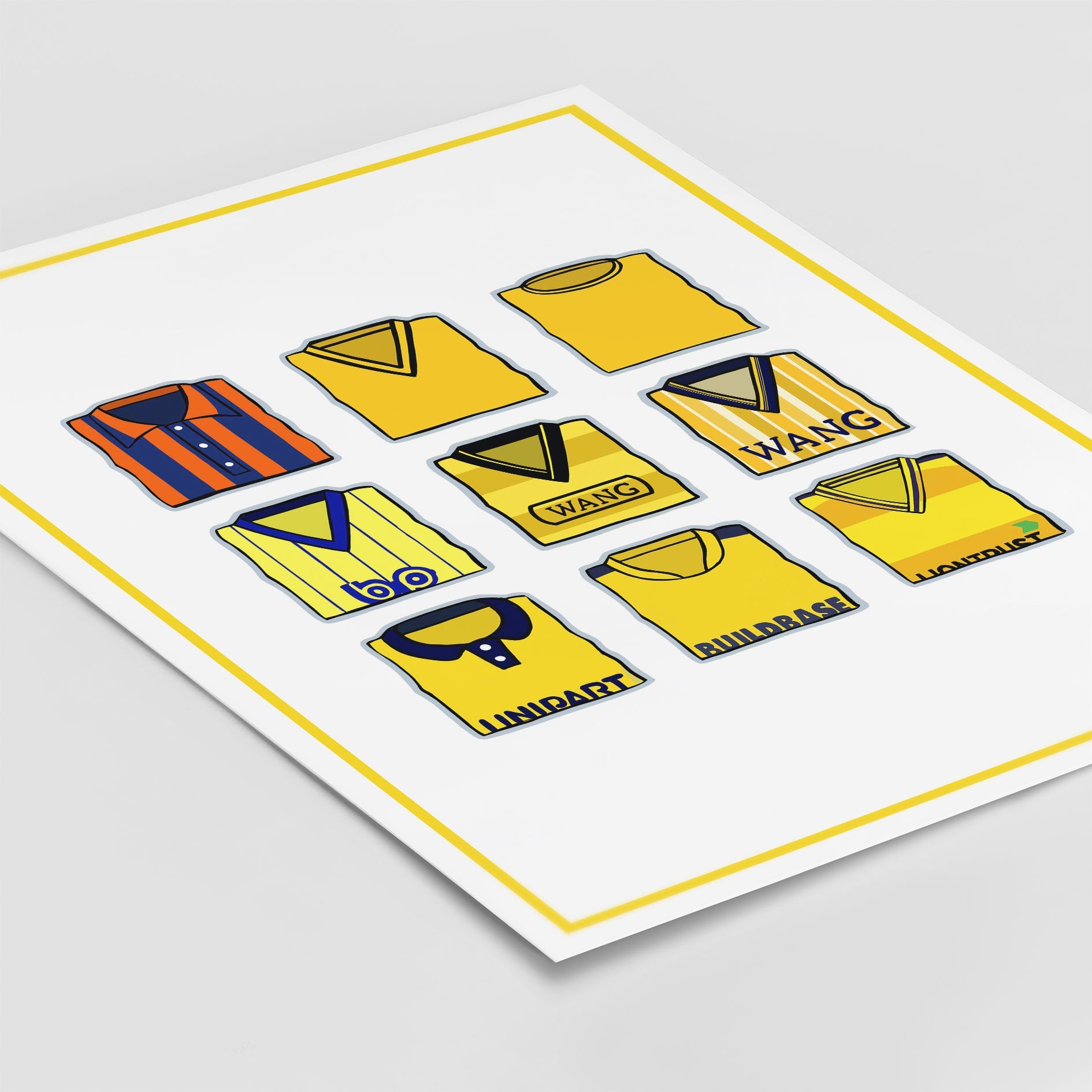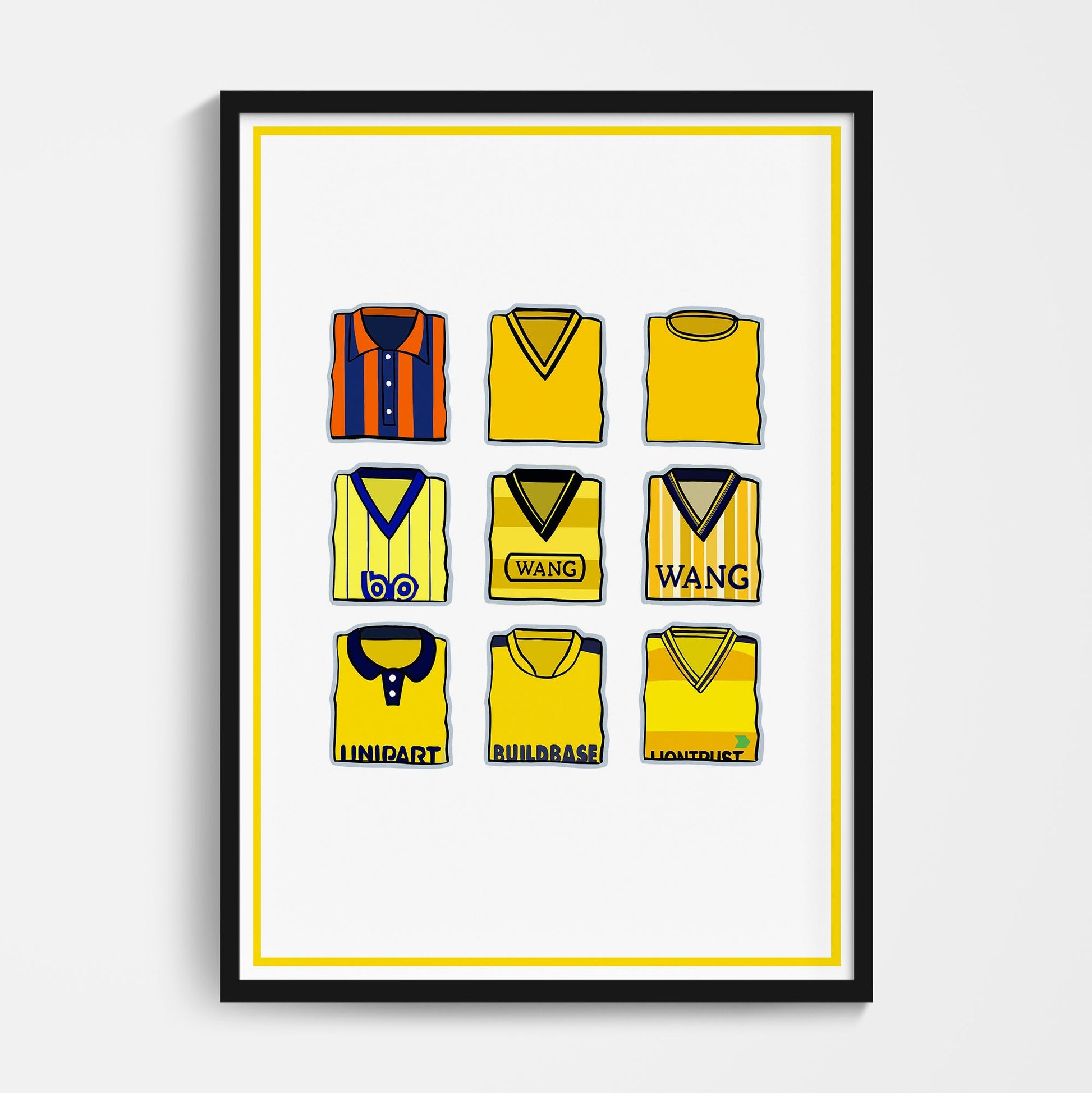 Original design featuring iconic classic retro football shirts on a quality poster.