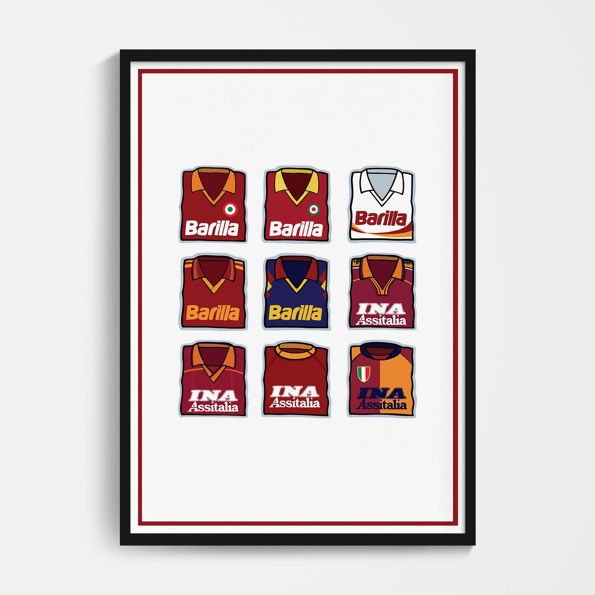 Original design featuring iconic classic retro football shirts on a quality poster.