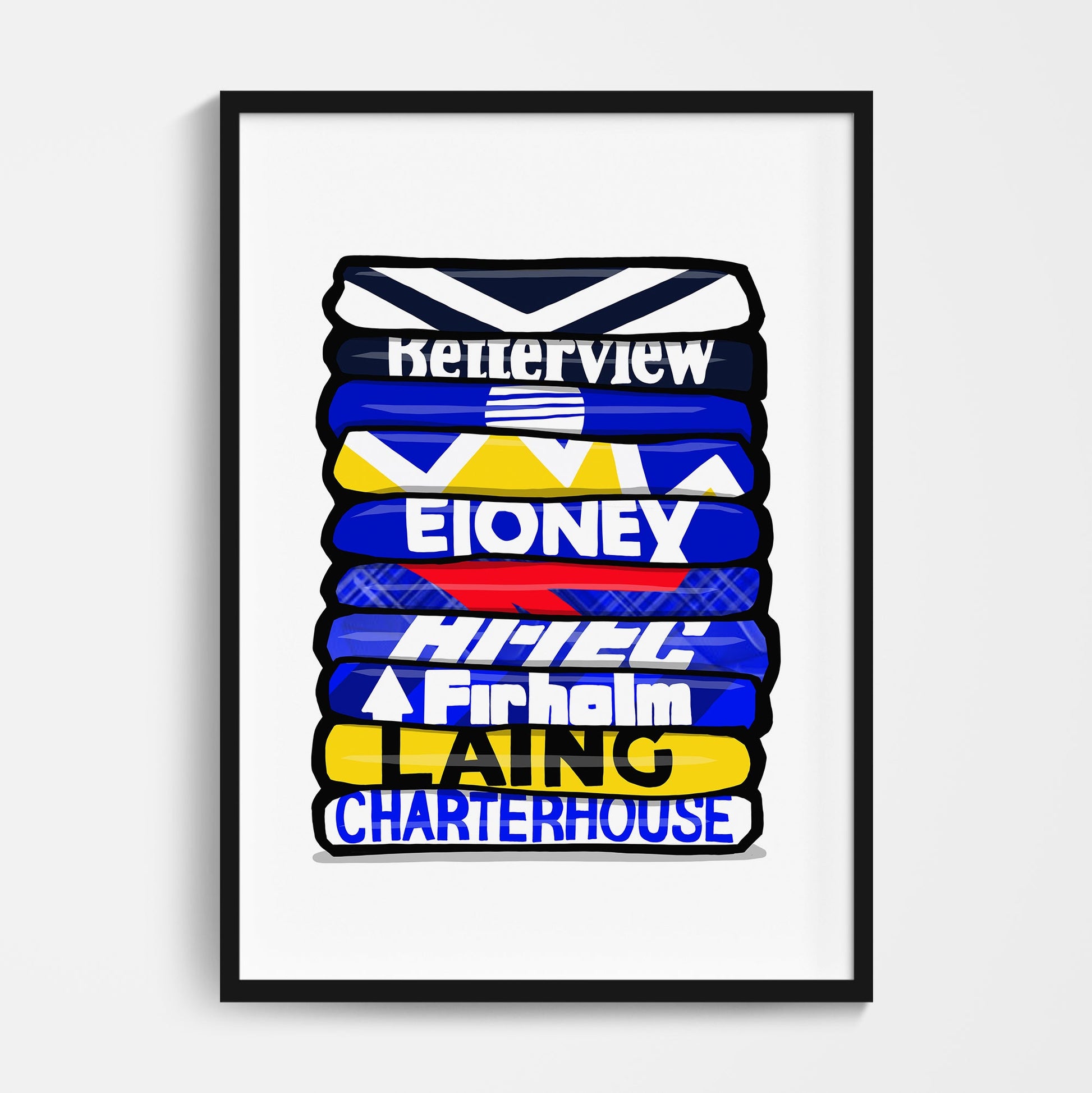 Original design featuring iconic classic retro football shirts on a quality poster.