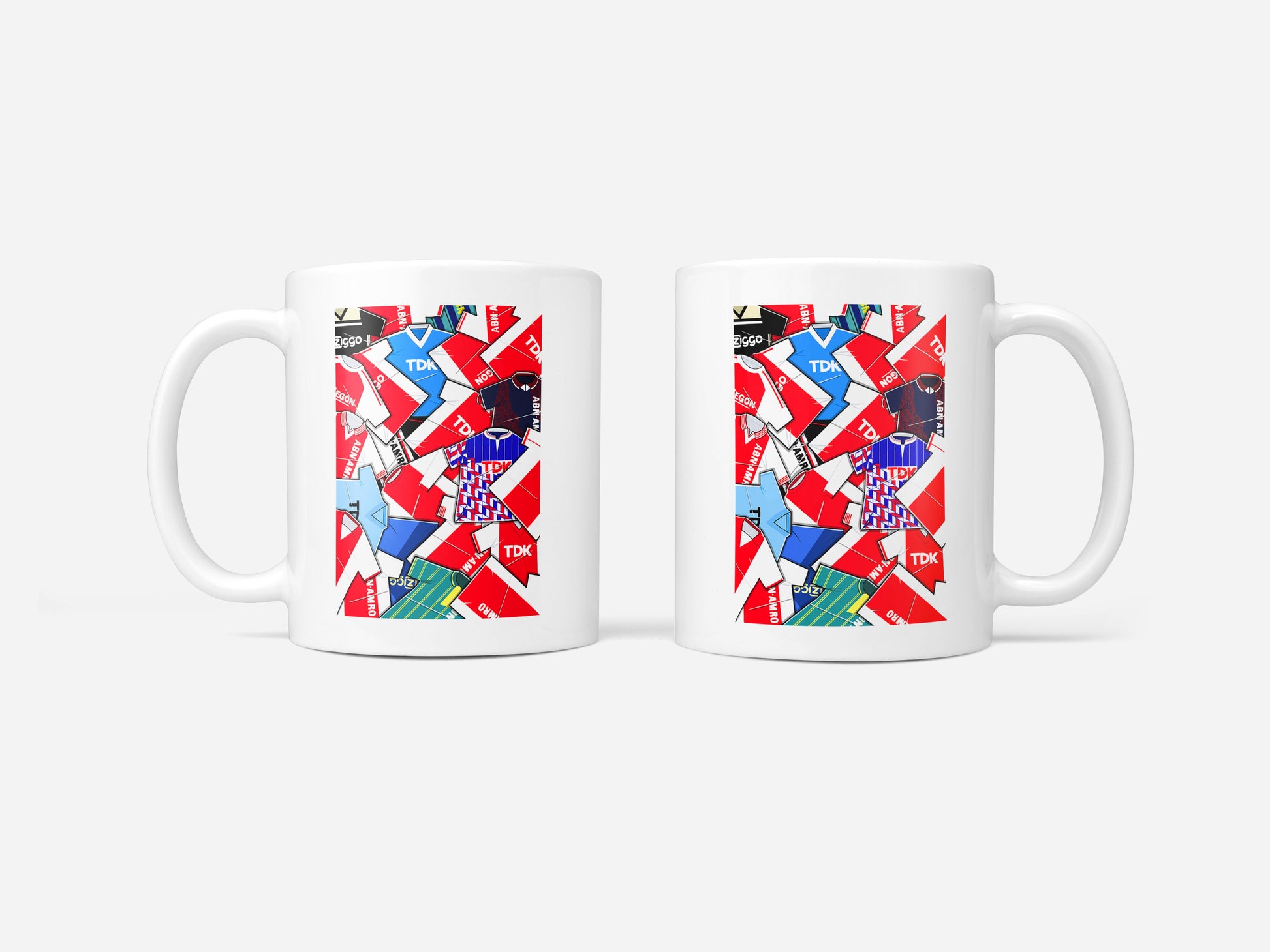 Iconic classic retro football shirts on a quality 11oz ceramic mug.