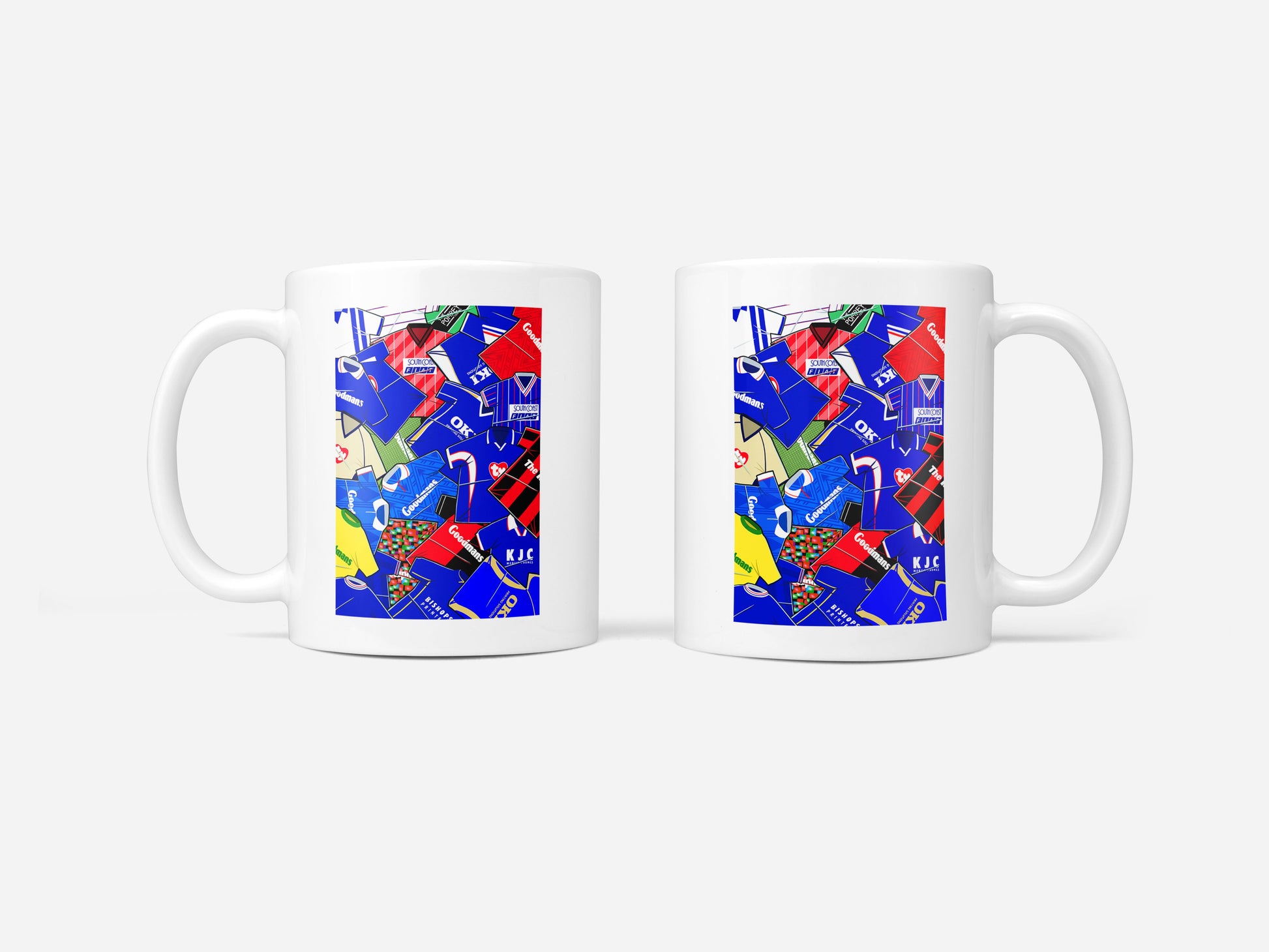 Iconic classic retro football shirts on a quality 11oz ceramic mug.