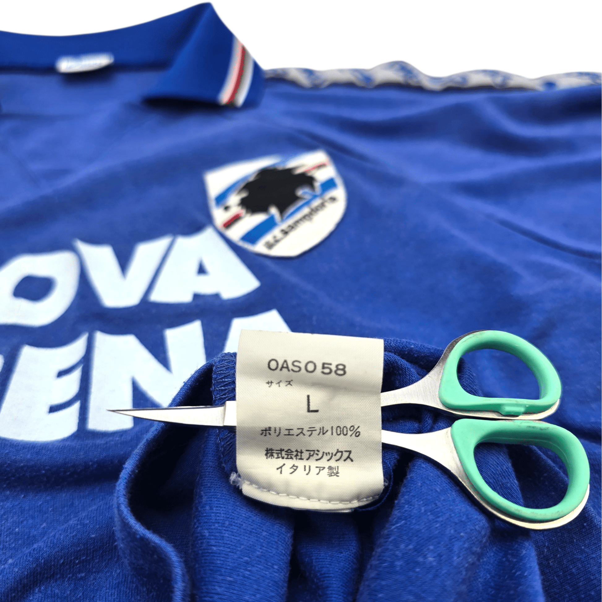 Information: Official Asics Sampdoria training shirt, as worn by ‘La Samp’ during the 1995/96 season, when the side competed in Serie A under Sven-Göran Eriksson and reached the semi-finals of the Coppa Italia with a squad blending experience and emerging talent. Asian market issue, so has internal wash labels for the region. A fantastic vintage jersey, ideal for a collection of your own or the perfect gift for any football fan.