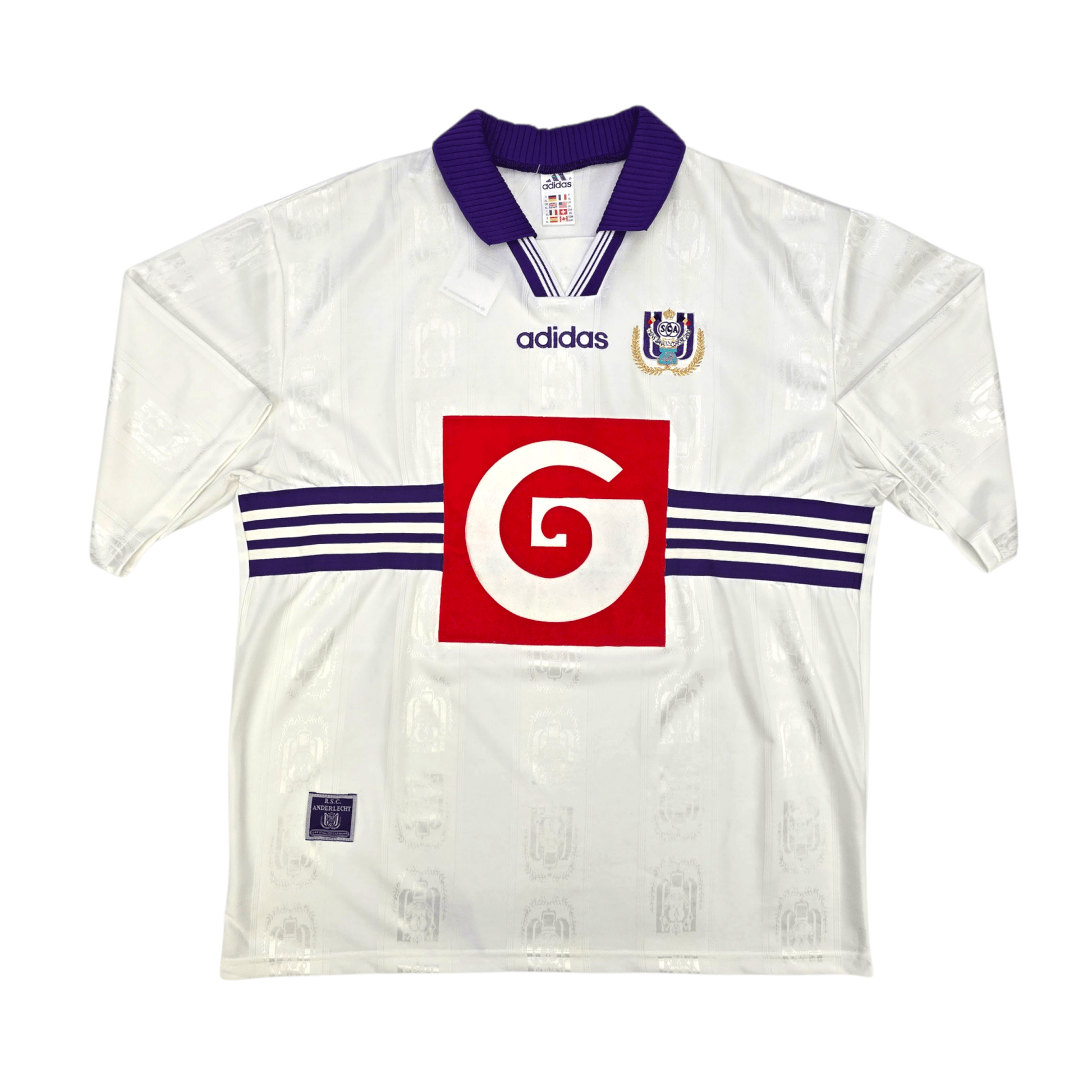 Information: Official Adidas Anderlecht home football shirt, as worn by ‘Paars-wit’ during the 1997/98 season, when the side competed in the Belgian First Division and reached the Belgian Cup final under René Vandereycken. A fantastic vintage jersey, ideal for a collection of your own or the perfect gift for any football fan.