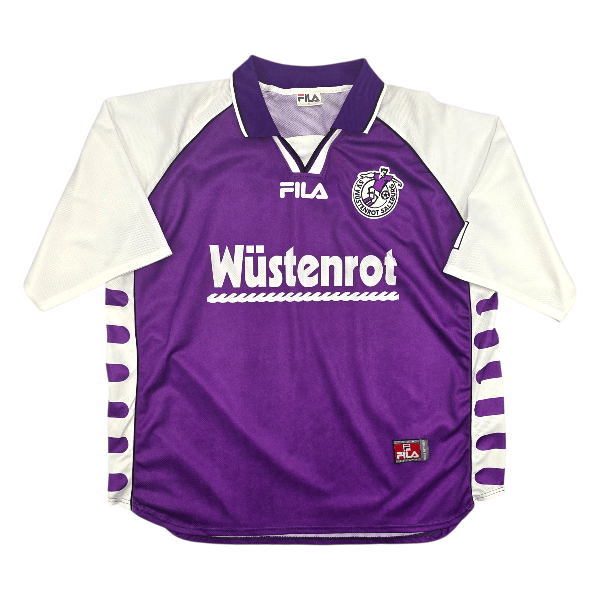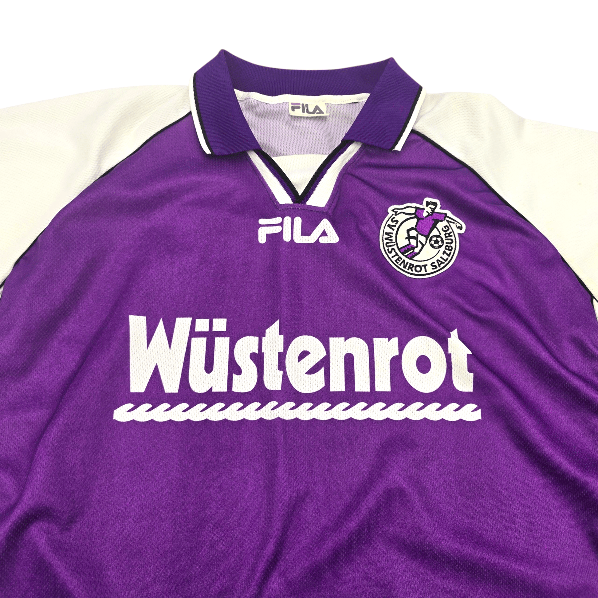 Information: Official FILA SV Wüstenrot Salzburg away football shirt during the club’s transitional years prior to its rebranding as Red Bull Salzburg. The side competed in the Austrian Bundesliga throughout this period, establishing itself as a consistent top-flight presence. A fantastic vintage jersey, ideal for a collection of your own or the perfect gift for any football fan.