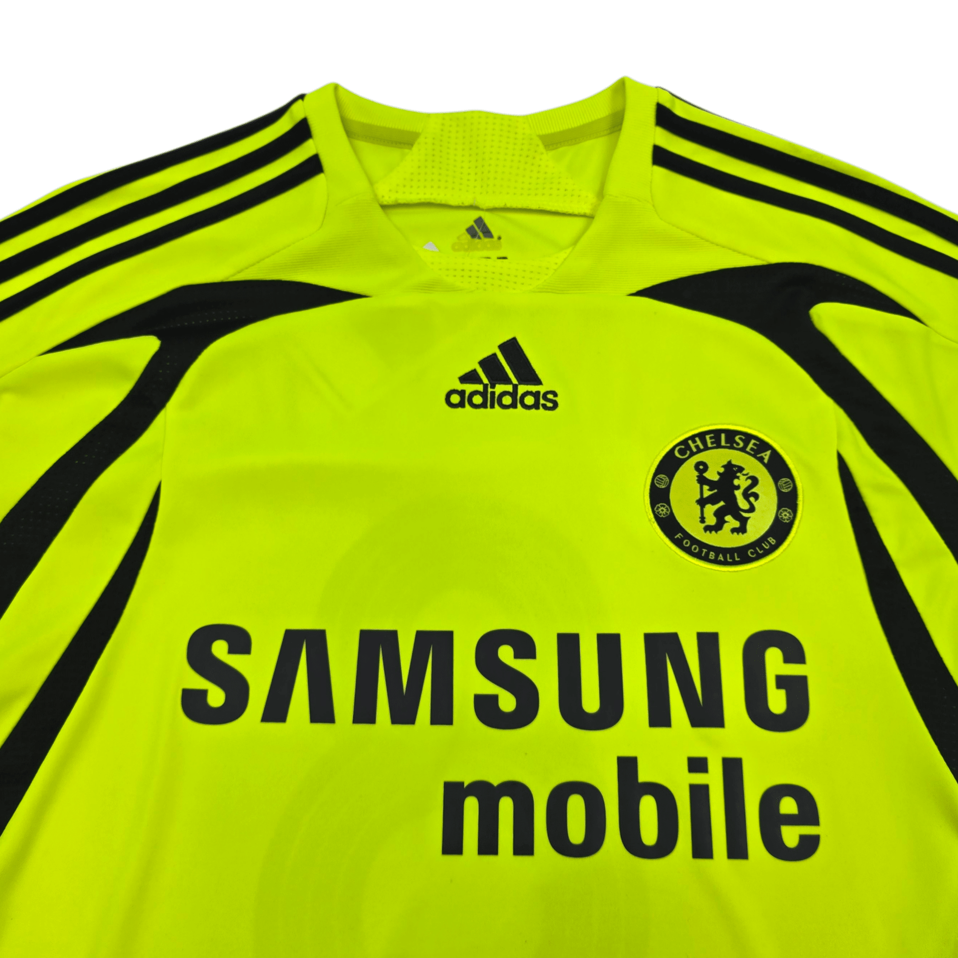 Information: Official Adidas Chelsea away football shirt, as worn by ‘The Blues’ during the 2007/08 season, when the side finished runners‑up in the Premier League and reached their first ever UEFA Champions League final. The reverse of the shirt boasts the nameset of club legend, Frank Lampard. A fantastic vintage jersey, ideal for a collection of your own or the perfect gift for any football fan.