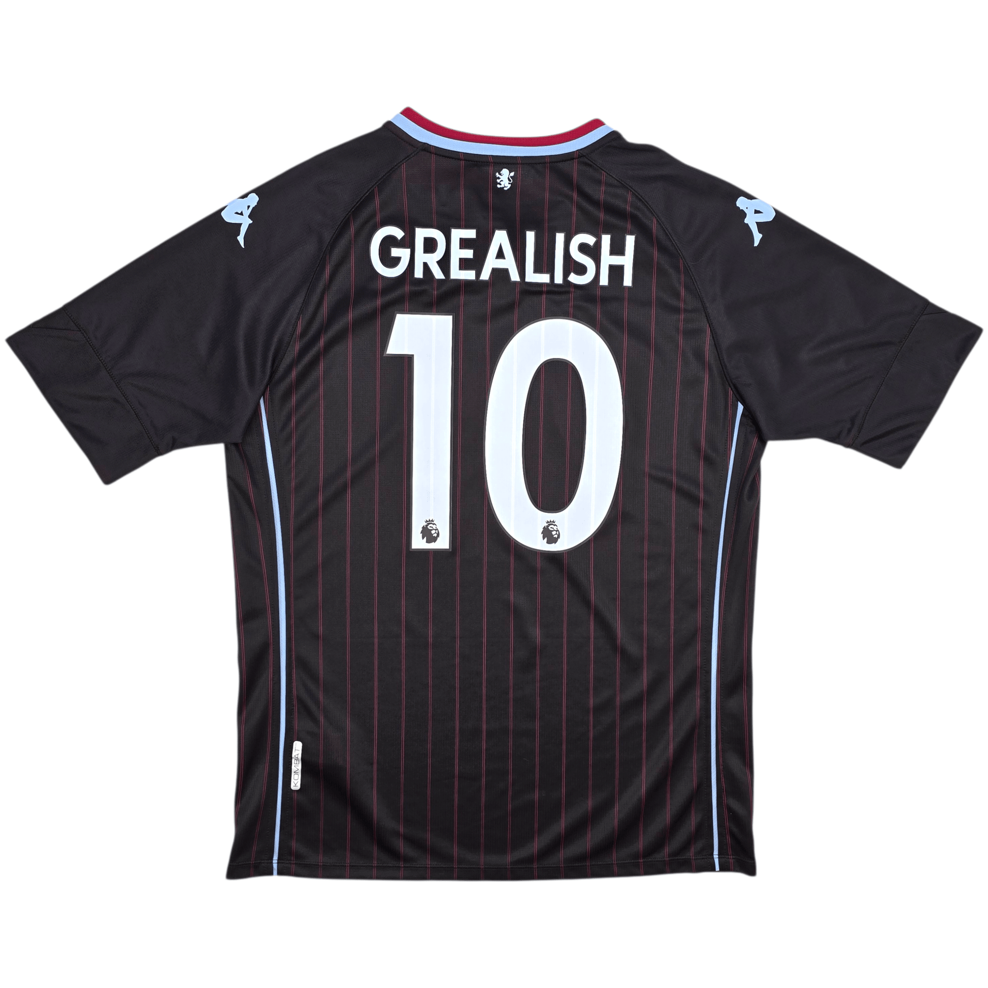 Information: Official Kappa Aston Villa away football shirt, as worn by the ‘Villans’ during the 2020/21 season, when the side produced an impressive Premier League campaign under Dean Smith, including a famous 7–2 victory over Liverpool and a strong push for a top-half finish. The reverse of the shirt boasts the nameset of club legend, Jack Grealish. A fantastic jersey, ideal for a collection of your own or the perfect gift for any football fan.