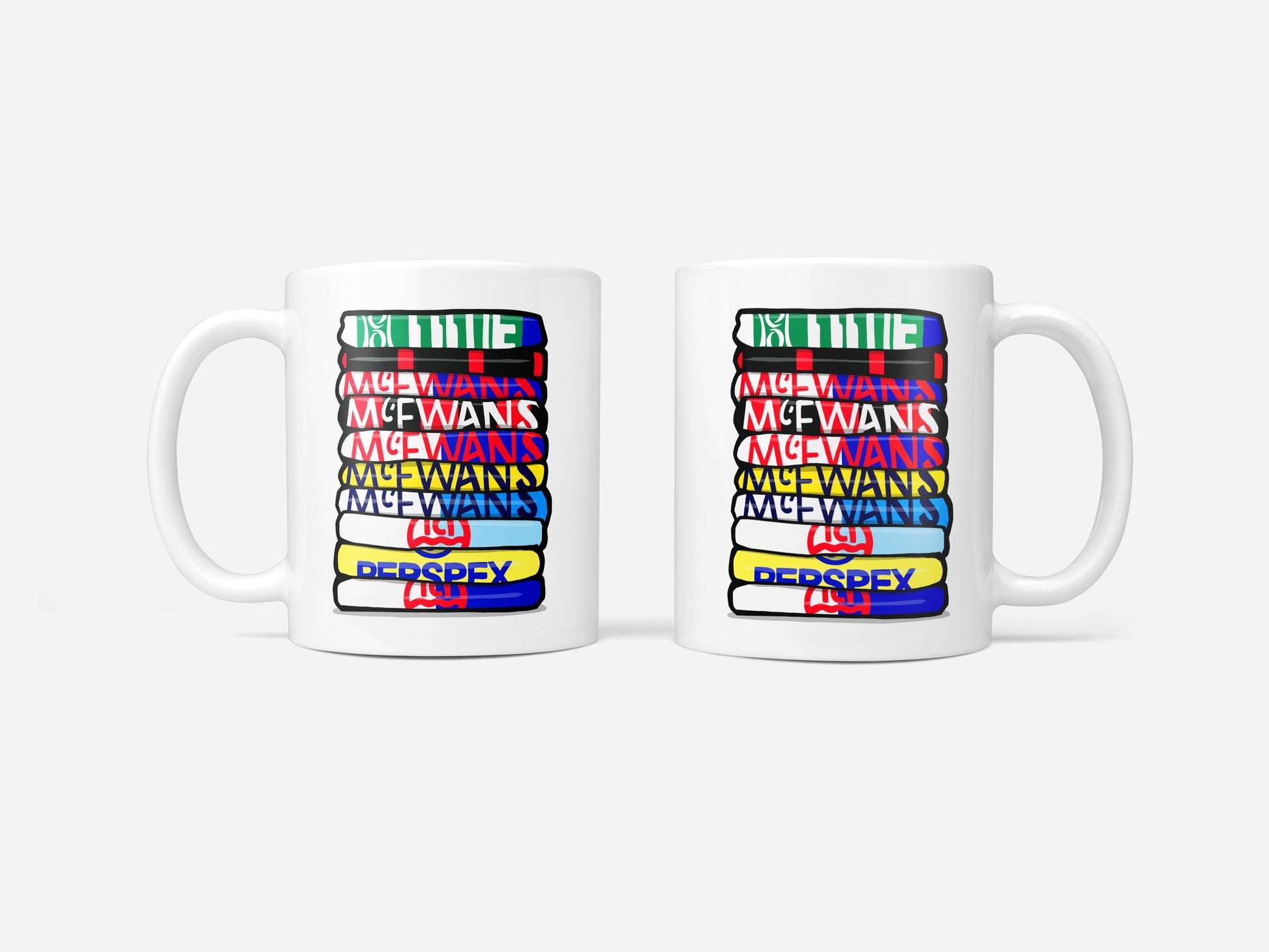 Iconic classic retro football shirts on a quality 11oz ceramic mug.