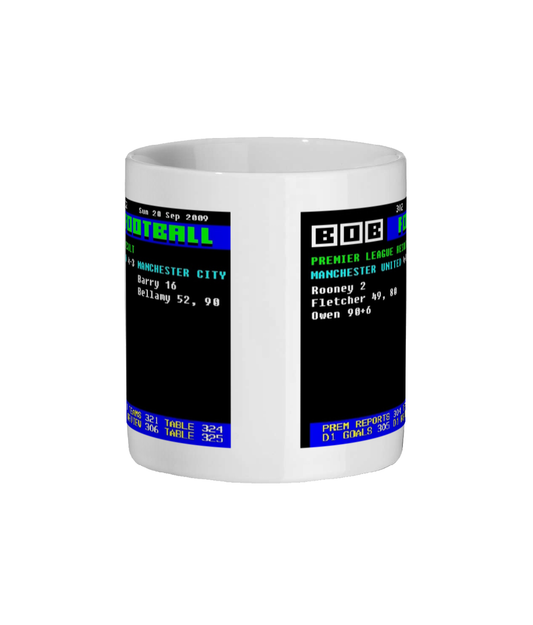 Manchester United 4-3 Manchester City 2009 Teletext Style Mug