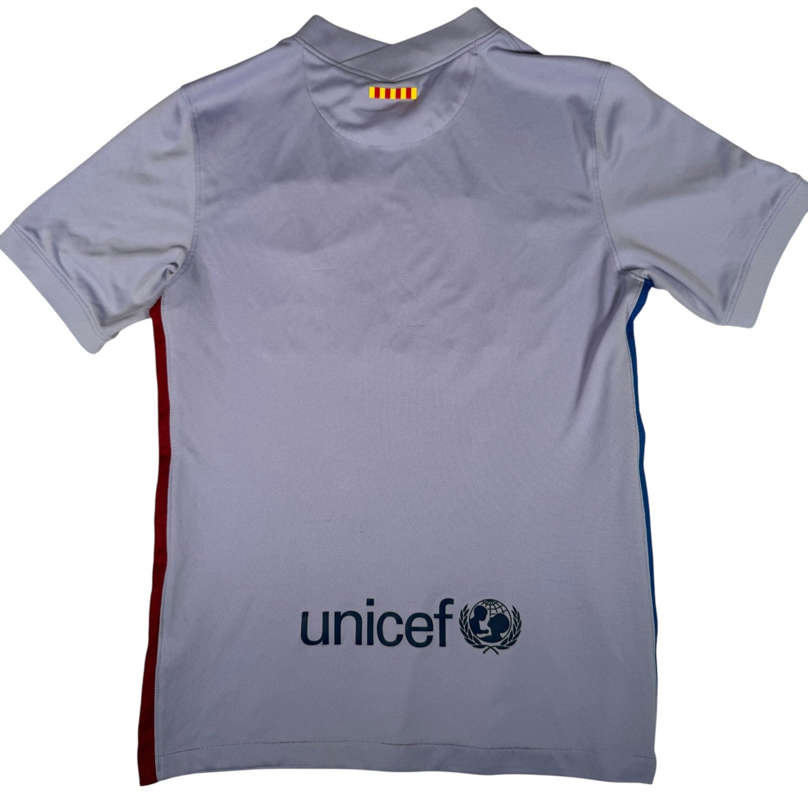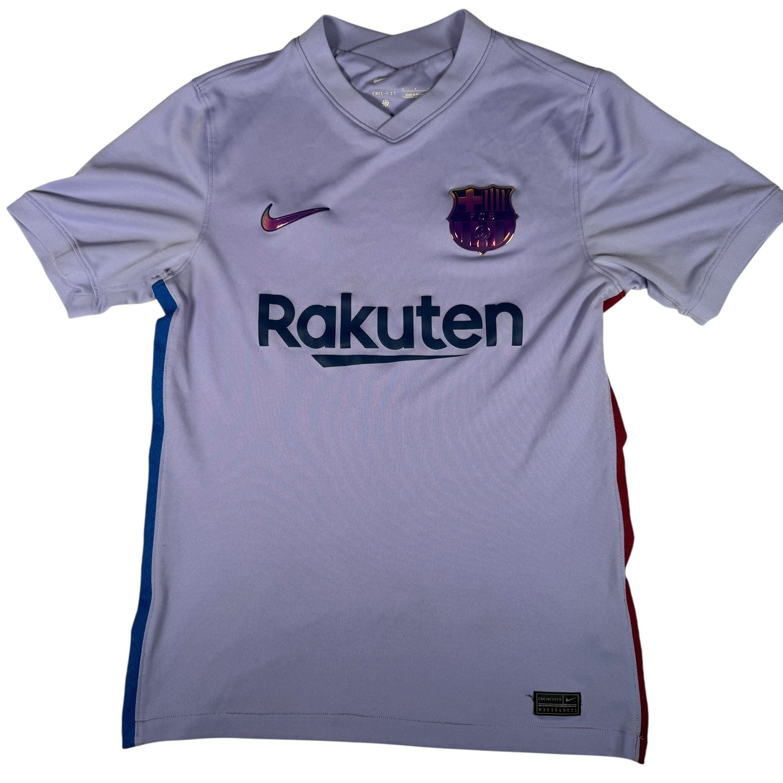 Add a classic to your collection with this original Barcelona 2021/2022 away football shirt in adults size Small.