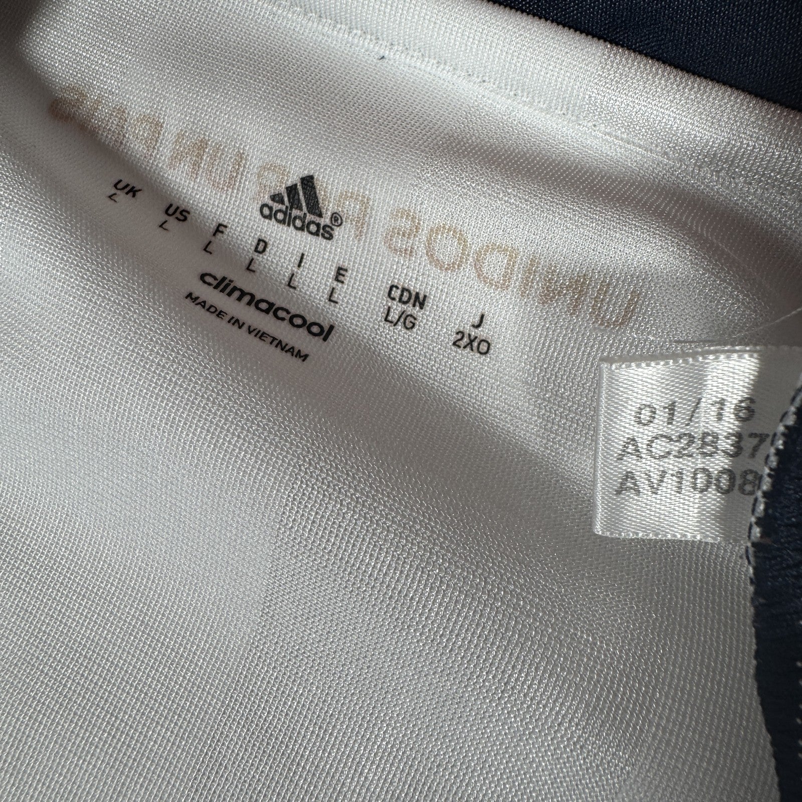 From the 2016/2017/2018 campaign, this original white Adidas jersey is a standout piece for fans or collectors of classic football kits.