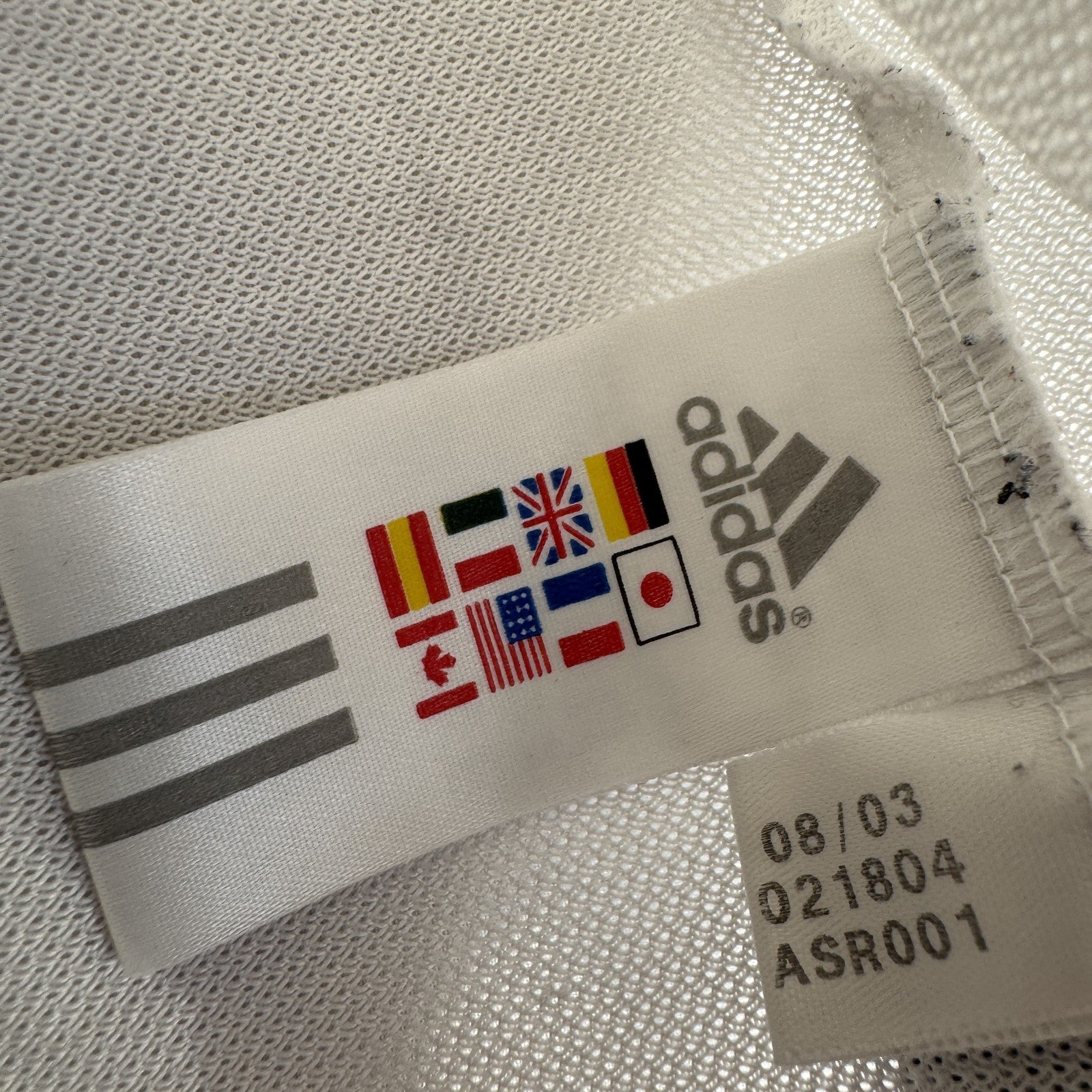 From the 2003/2004 campaign, this original white Adidas jersey is a standout piece for fans or collectors of classic football kits.