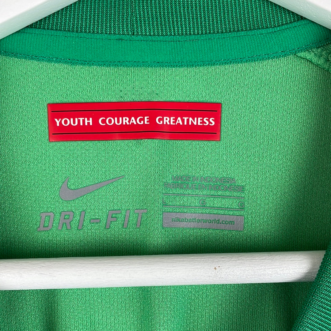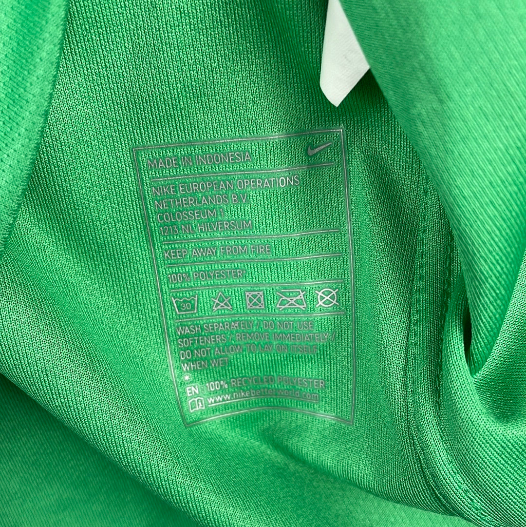 Player Issue Details: Thie player issue variant of this shirt has the printed wash label inside, correct for Nike player shirts at this time. The shirt also has more mesh panels with holes on the side. The shirt has the correct player print with Valdes 32 in the Premier League print.