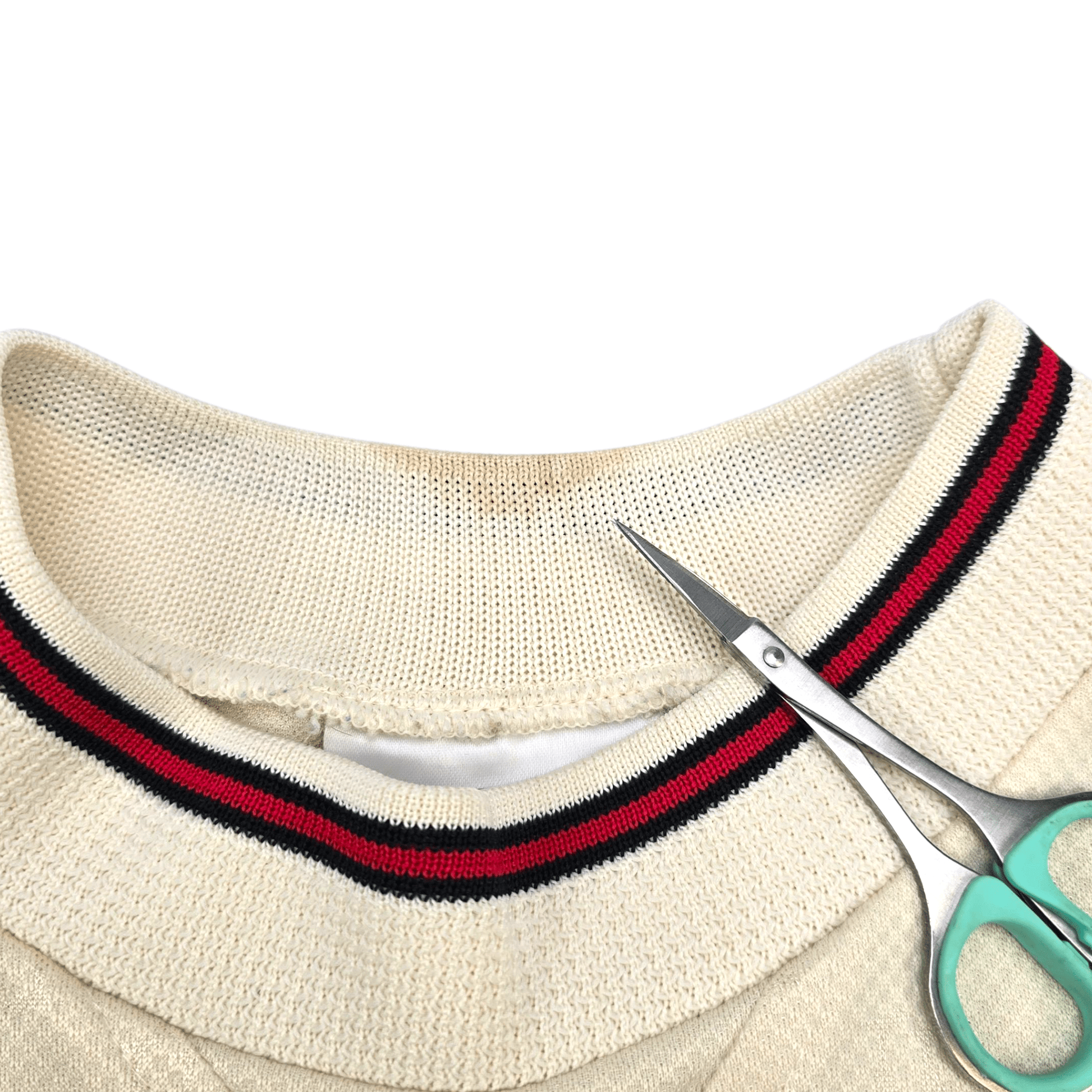 Each item is individually assessed while being photographed for listing.  We carry out careful checks for signs of wear & tear, such as bobbling, pulls, tears, holes repairs, marks, discolouring etc.