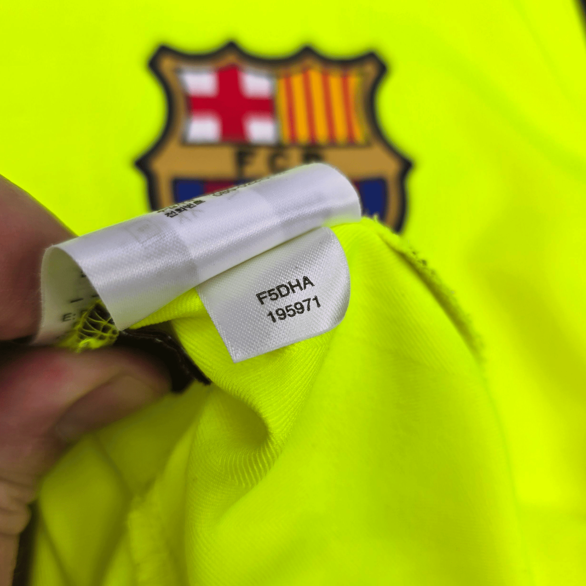 Information: Official Nike Barcelona away football shirt, as worn by 'Barça' during the 2005/06 season, famously when the club lifted the UEFA Champions League trophy in Paris. The reverse of the shirt boasts the nameset of club legend, Ronaldinho. A fantastic vintage jersey, ideal for a collection of your own or the perfect gift for any football fan.