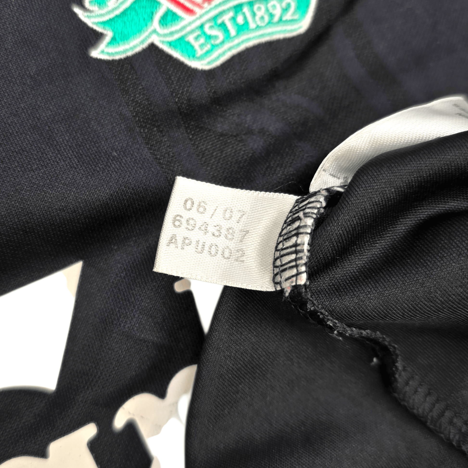 Information: Official Adidas Liverpool third football shirt, as worn by 'The Reds' during the 2007/08 season, when the side reached the Champions League semi-finals under Rafael Benítez before being narrowly eliminated by Chelsea. The reverse of the shirt boasts the nameset of club legend, Steven Gerrard. A fantastic jersey, ideal for a collection of your own or the perfect gift for any football fan.