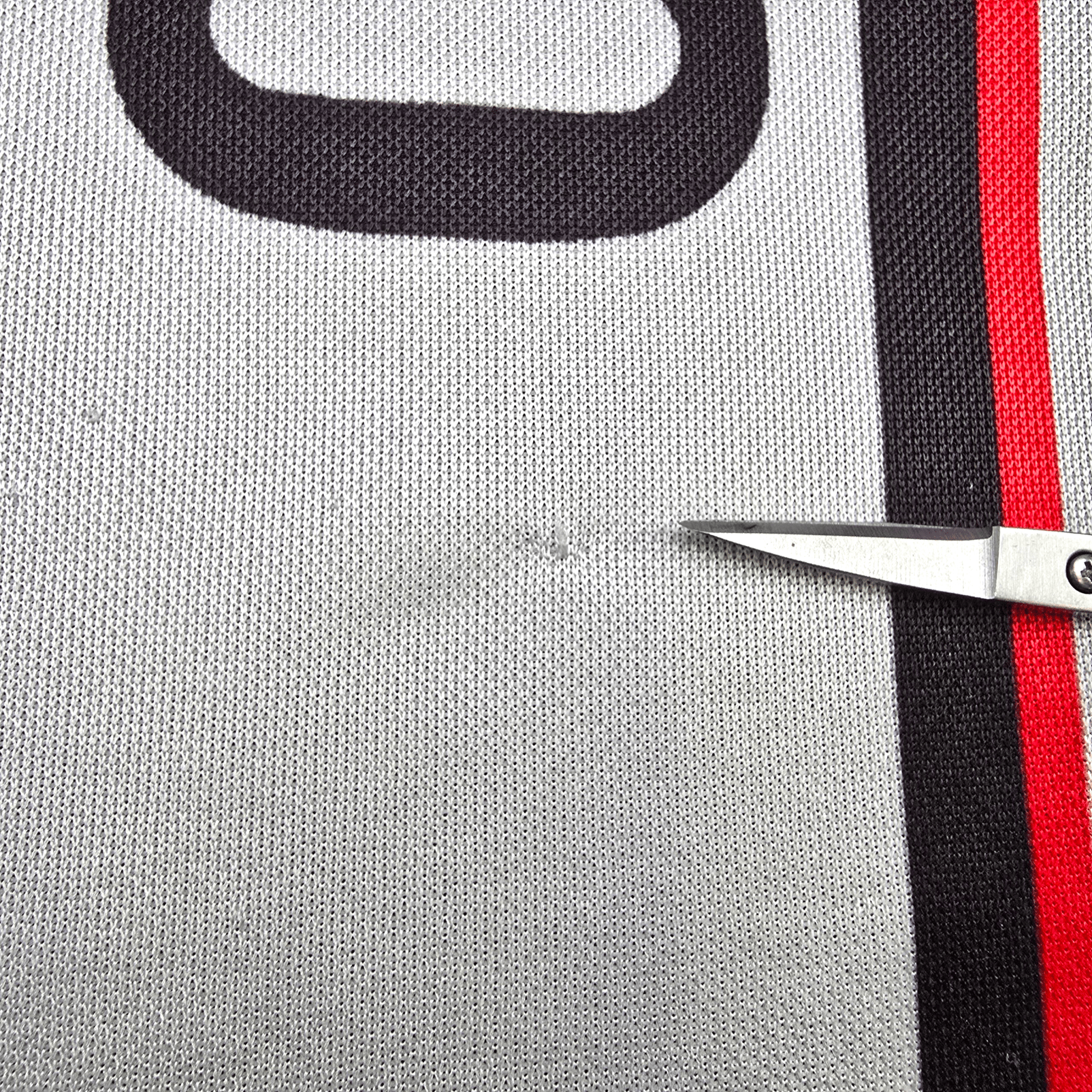 Each item is individually assessed while being photographed for listing.  We carry out careful checks for signs of wear & tear, such as bobbling, pulls, tears, holes repairs, marks, discolouring etc.