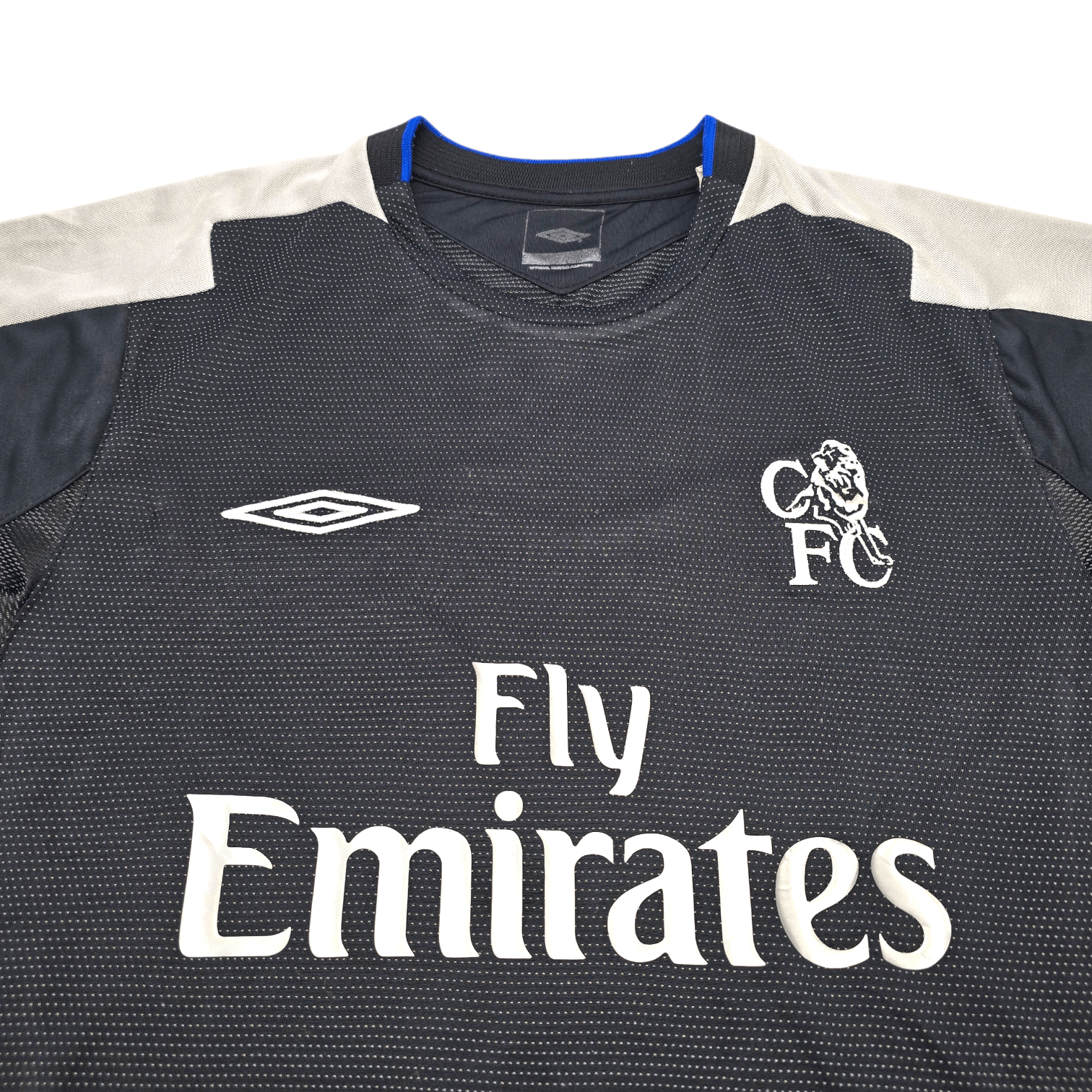 Information: Official Umbro Chelsea away football shirt, as worn by the ‘Blues’ during the 2004/05 season, when the side, under José Mourinho, won the Premier League title for the first time in 50 years and also lifted the League Cup in a dominant campaign. The reverse of the shirt boasts the nameset of club legend, Didier Drogba. A fantastic vintage jersey, ideal for a collection of your own or the perfect gift for any football fan.