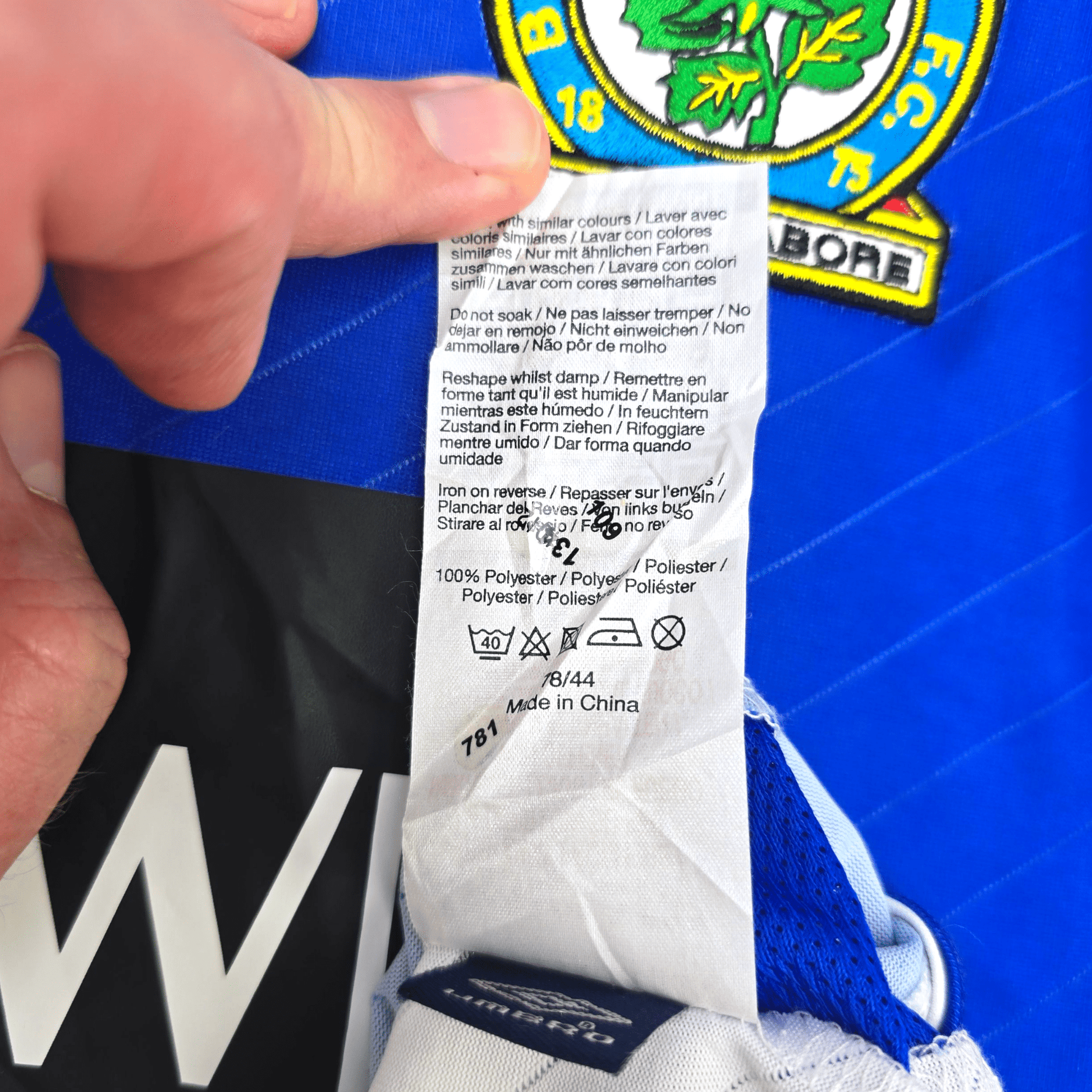 Information: Official Umbro Blackburn Rovers home football shirt, as worn by 'Rovers' during the 2008/09 season. The reverse of the shirt boasts the nameset of club legend, Roque Santa Cruz. A fantastic vintage jersey, ideal for a collection of your own or the perfect gift for any football fan.