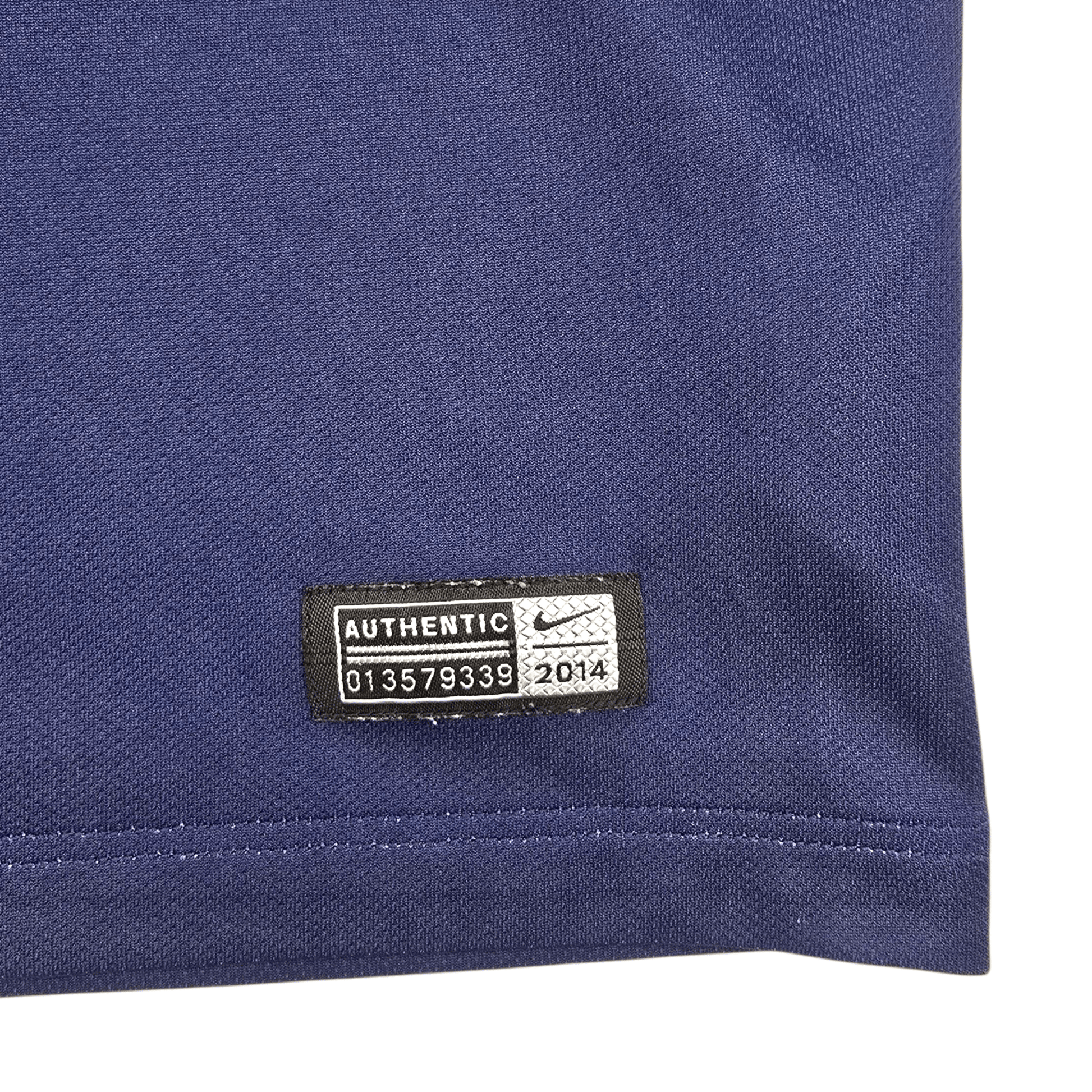 Information: Official Nike Paris Saint-Germain home football shirt, as worn by ‘Les Parisiens’ during the 2014/15 season, when the side, led by Laurent Blanc, completed a domestic treble by winning Ligue 1, the Coupe de France and the Coupe de la Ligue. The reverse of the shirt boasts the nameset of club legend, Thiago Silva. A fantastic jersey, ideal for a collection of your own or the perfect gift for any football fan.