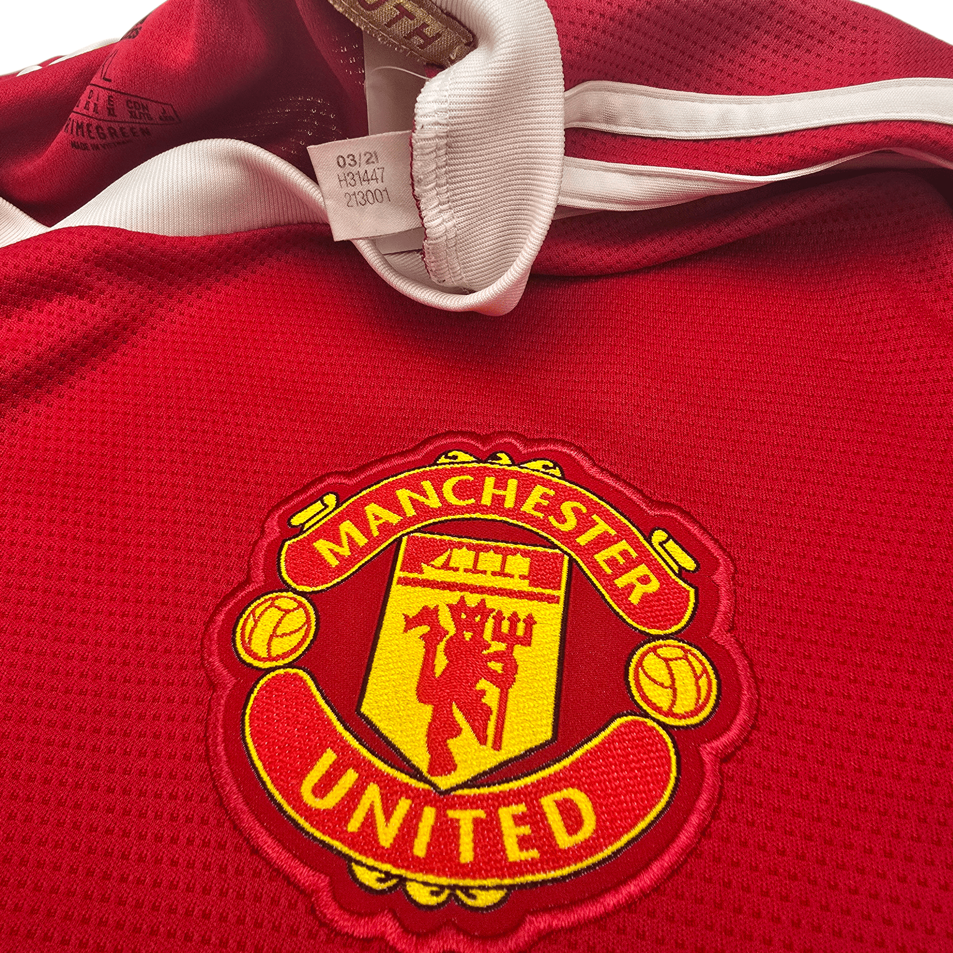 Information: Official Adidas Manchester United home football shirt, as worn by the ‘Red Devils’ during the 2021/22 season, when the side finished sixth in the Premier League and progressed to the Round of 16 of the UEFA Champions League in a campaign that saw the return of a global icon to Old Trafford. The reverse of the shirt boasts the nameset of club legend, Cristiano Ronaldo. A fantastic jersey, ideal for a collection of your own or the perfect gift for any football fan.