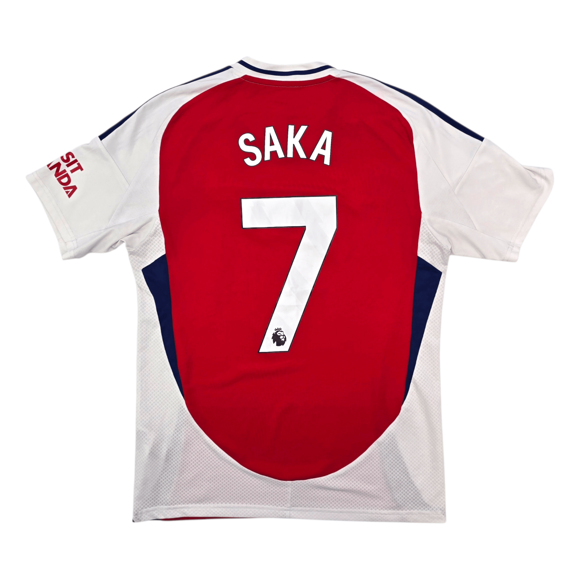 Information: Official Adidas Arsenal home football shirt, as worn by ‘The Gunners’ during the 2024/25 season, when the side delivered a strong campaign finishing as Premier League runners‑up. The reverse of the shirt boasts the nameset of club legend, Bukayo Saka. A fantastic jersey, ideal for a collection of your own or the perfect gift for any football fan.