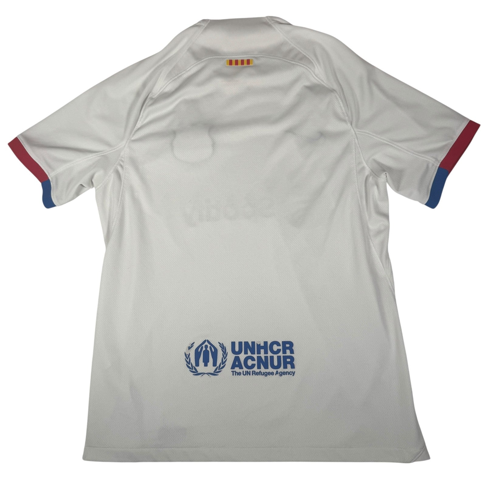 Add a classic to your collection with this original Barcelona 2023/2024 away football shirt in adults size Medium.