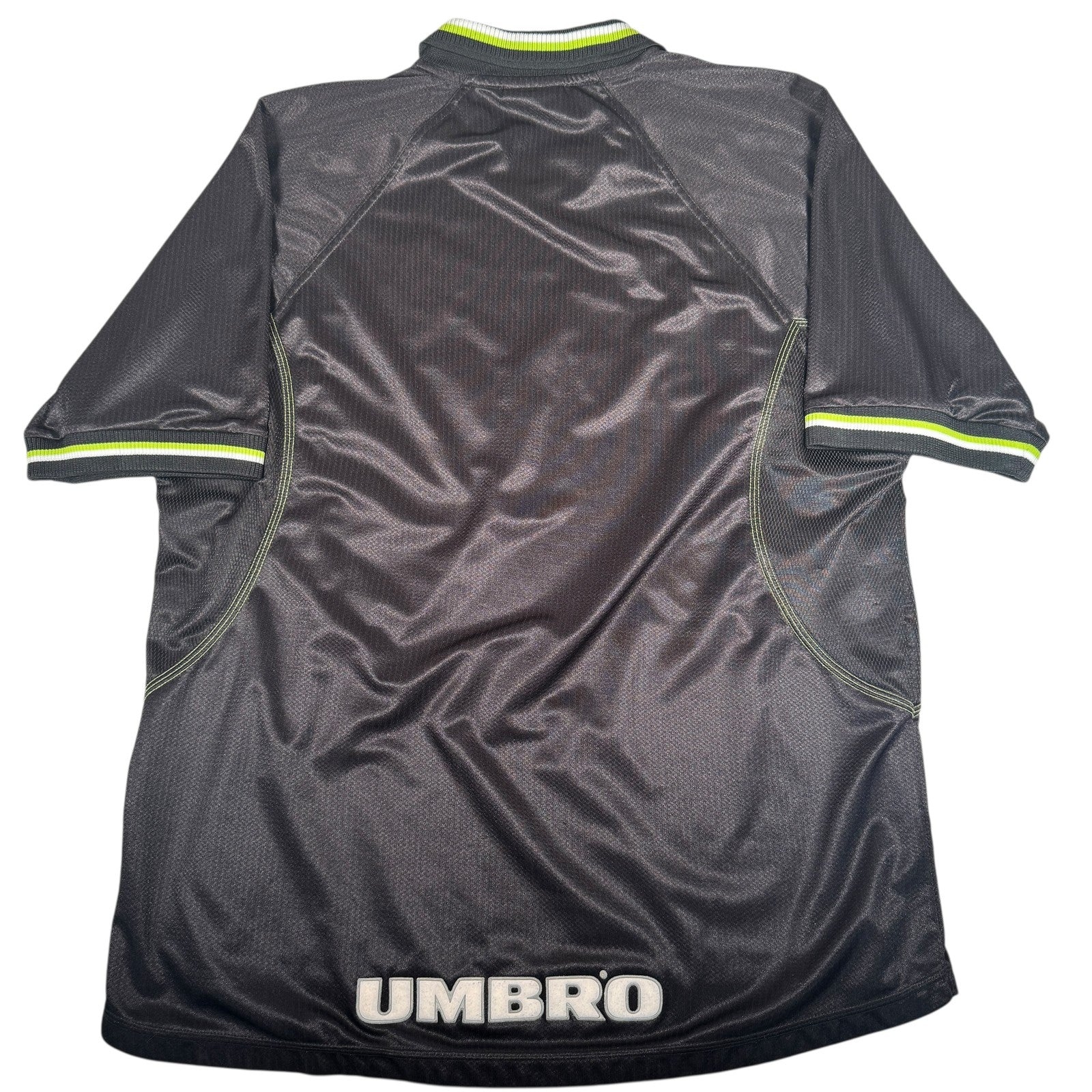 From the 1998/1999 campaign, this original black Umbro jersey is a standout piece for fans or collectors of classic football kits.