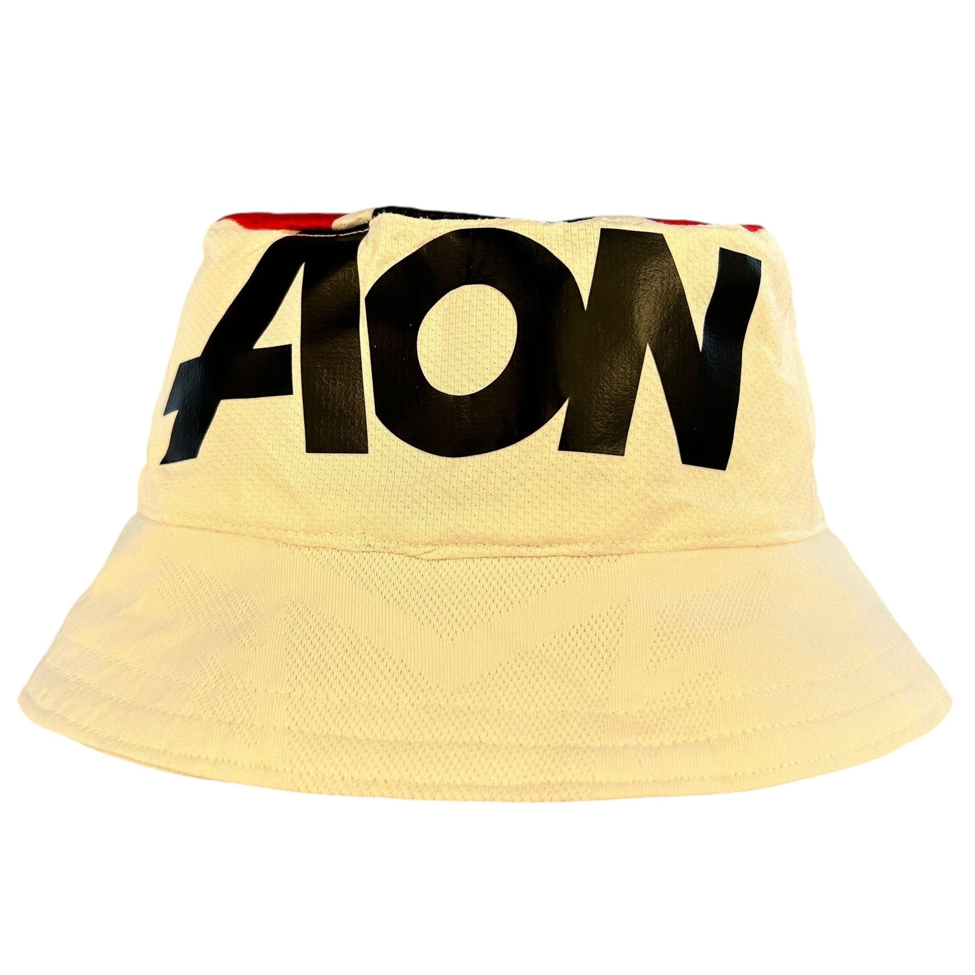 Bucket Hat Info: This is a custom Manchester United bucket hat made from a 2010/2011 away shirt. It has the United badge and Nike swoosh on the side. The other side has the AON sponsor. The top and brim use the sleeve material with red and black features.