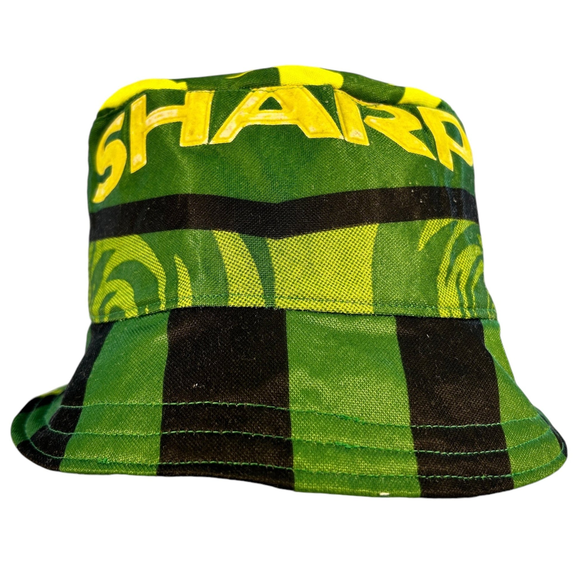 Bucket Hat Info: What a bucket hat! This is made from a damaged 97/98 youth goalkeeper shirt. The pattern from the shirt is on the top and works perfectly with the design. The hat ahs the United badge and SHARP sponsor on the sides.