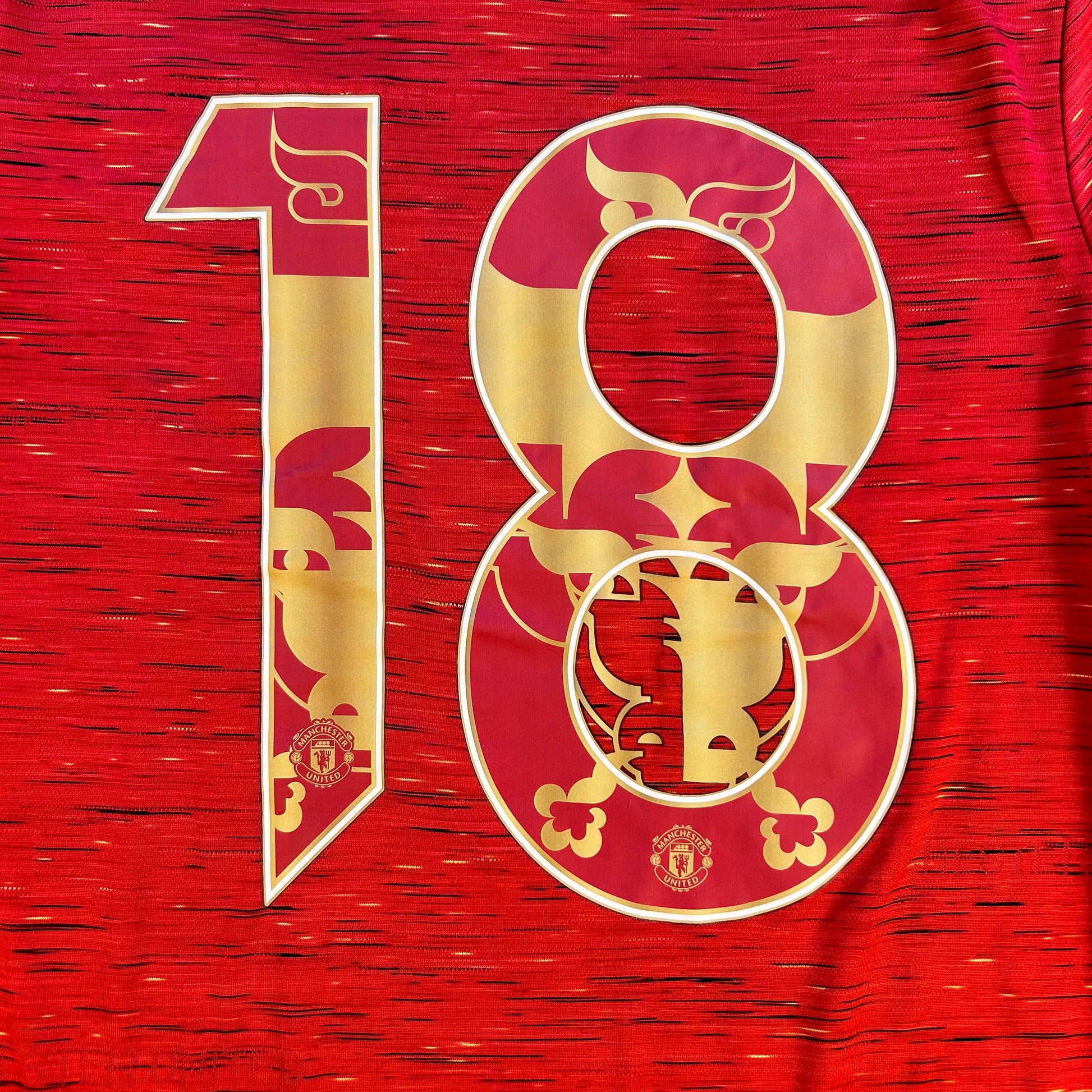 Shirt info: The 2020/2021 home shirt for Manchester United. Short sleeve and in as-new condition. This shirt has the Chinese New Year print for FERNANDES with the Chinese New Year font for the name.