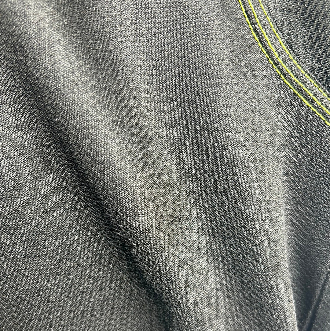 Shirt info: The classic black third shirt from the season United won the treble. The shirt has lime green detailing throughout, with an embroidered Manchester United badge and Umbro logo. The 'Sharp' sponsor and 'Umbro' sponsor on the lower back are made from white felt. The shirt has a classic-looking collar with white and lime green stripes.