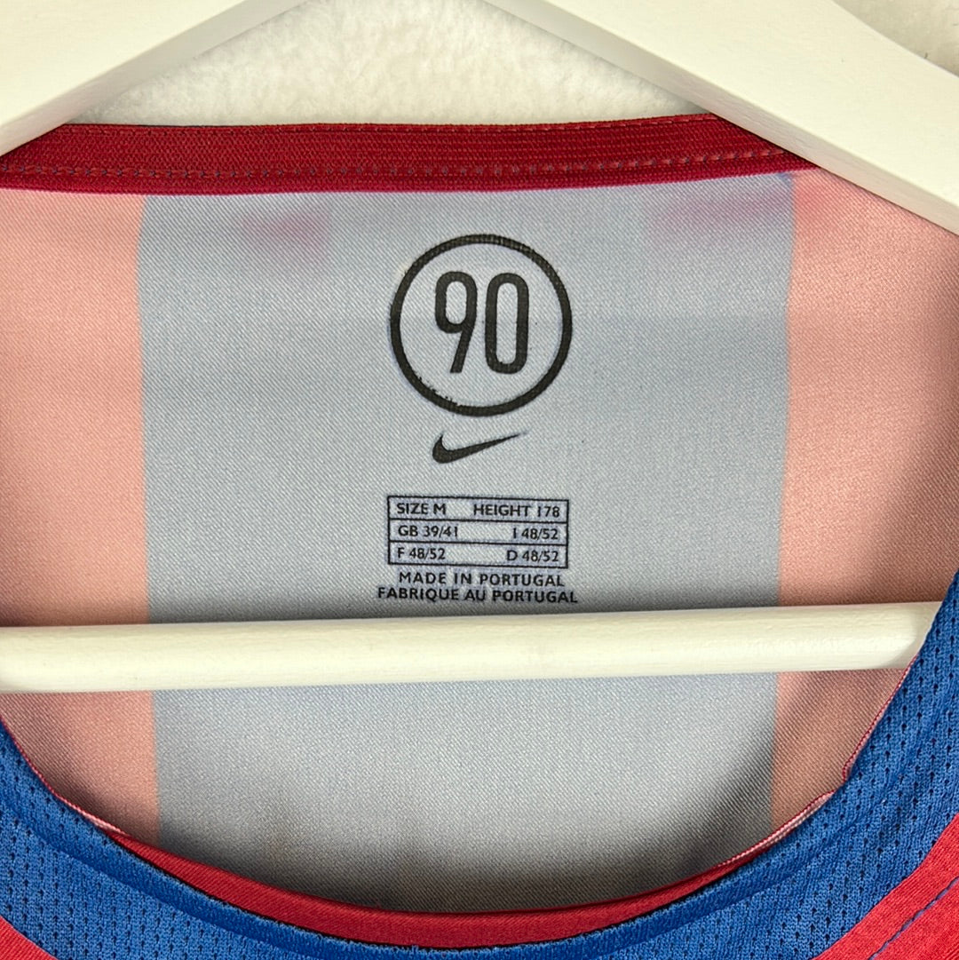 Player Issue Details: The shirt is a correct player-issue shirt with no internal labels, correct for a Nike player-issue shirt at this time. The Barcelona badge has additional stitching holding it in place.