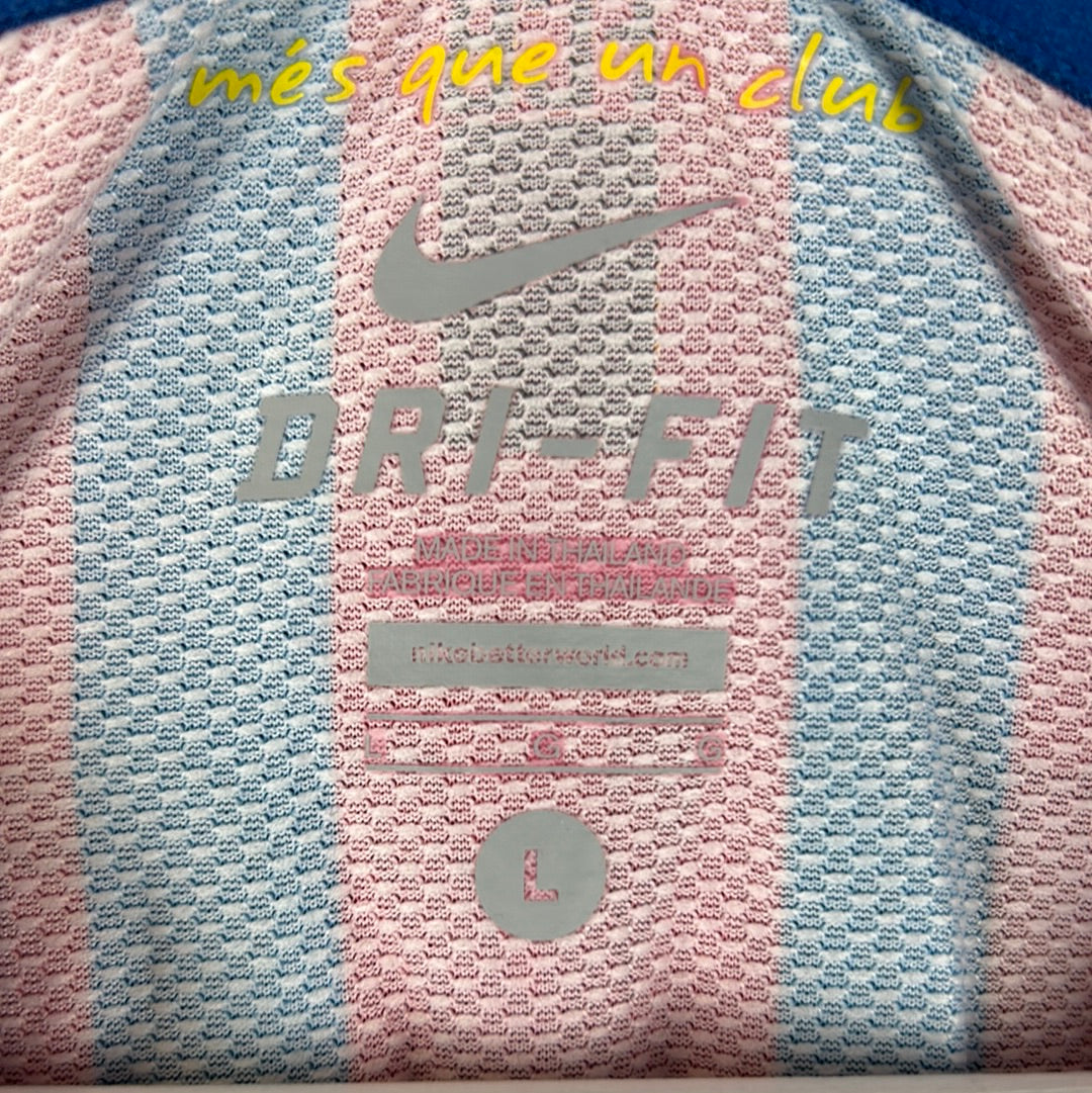 Player Issue Details: The shirt is a correct player issue shirt with the wash label on the inside of the shirt. The shirt has come from a large collection of over 140 player-issue Barcelona shirts. It has the correct details for a player-issued shirt. It has the correct badges on both sleeves.
