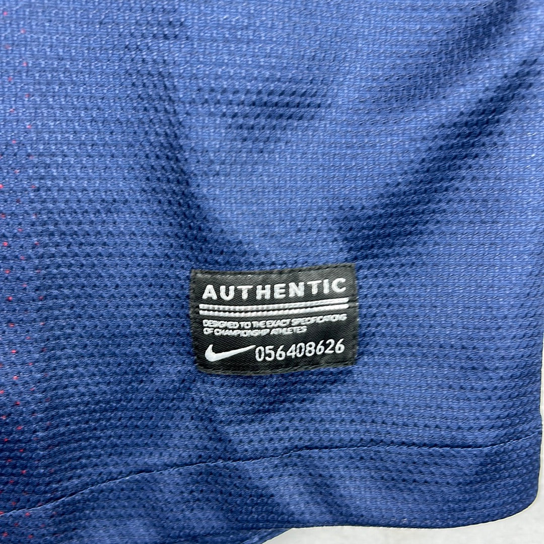 Player Issue Details: The shirt is a correct player issue shirt with the wash label on the inside of the shirt. It has the correct player print and sleeve patches.