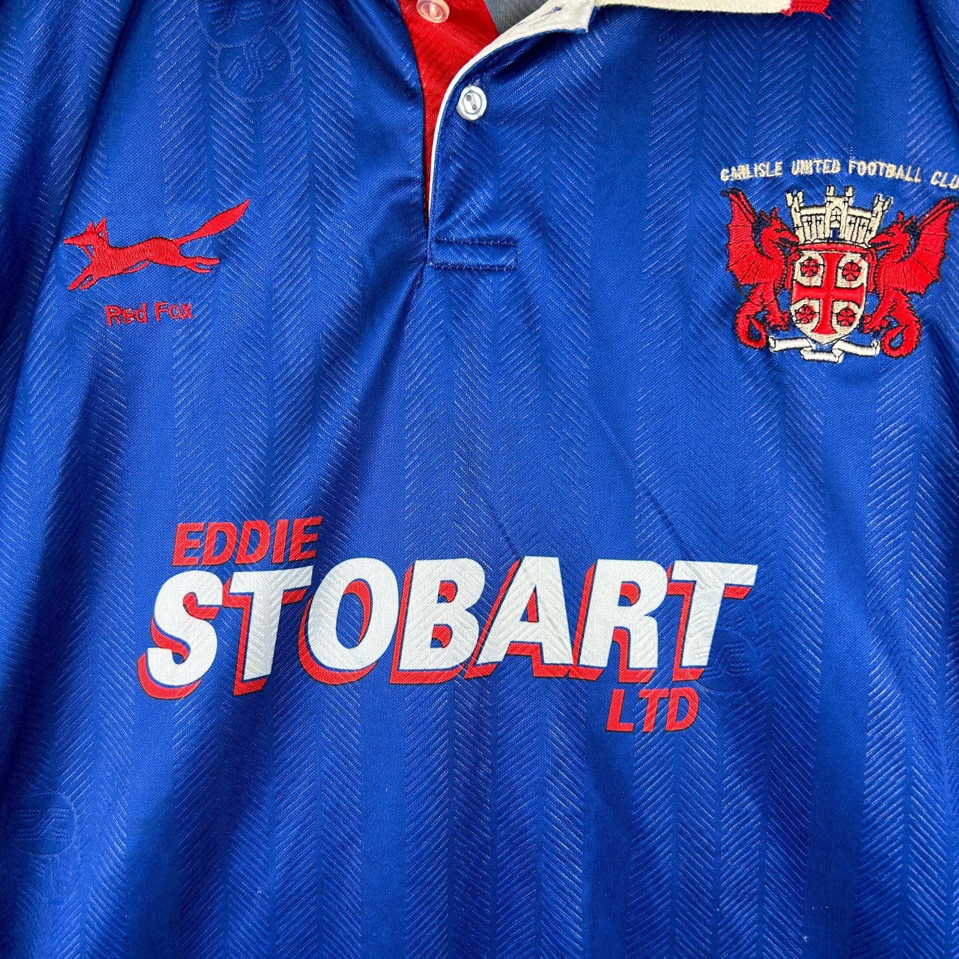 Shirt info: This is a player-issue/match-worn Carlisle United shirt. It has the Nationwide sleeve patches and a hand-sewn number 3 on the back. The Carlisle United badge and Red Fox logo are fully embroidered.