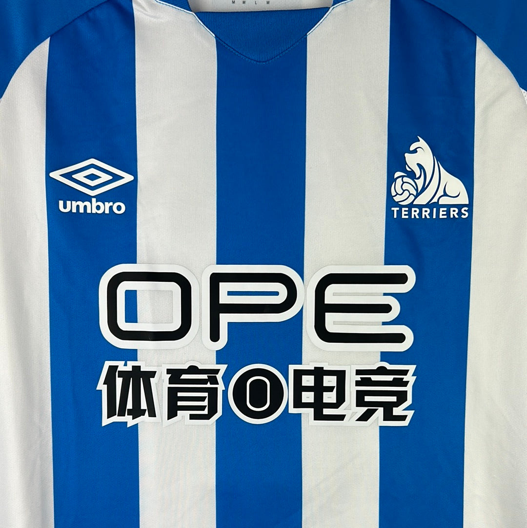 Shirt info: The home shirt for Huddersfield Town in the 18/19 season.