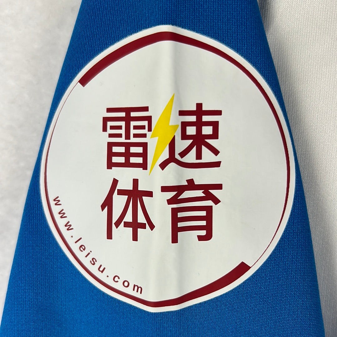 Player Issue Details: The shirt is an Umbro player issue shirt with all the details printed. It has the felt Premier League sleeve patch and a leisu sponsor sleeve patch.