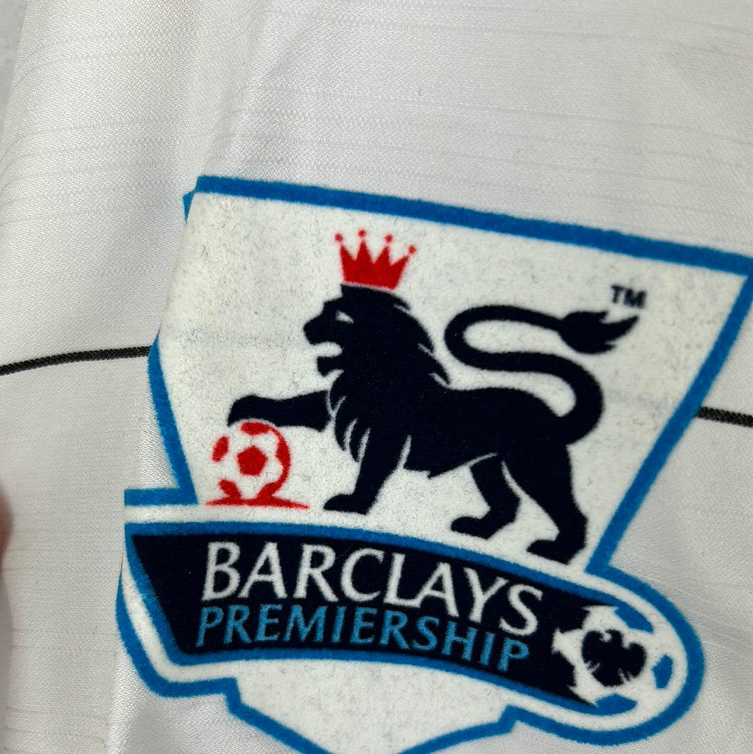 The shirt also has a large player-size name and number. The inside labels are missing the number and the date label that the standard shirts have. The shirt also has felt Premier League patches on both sleeves.