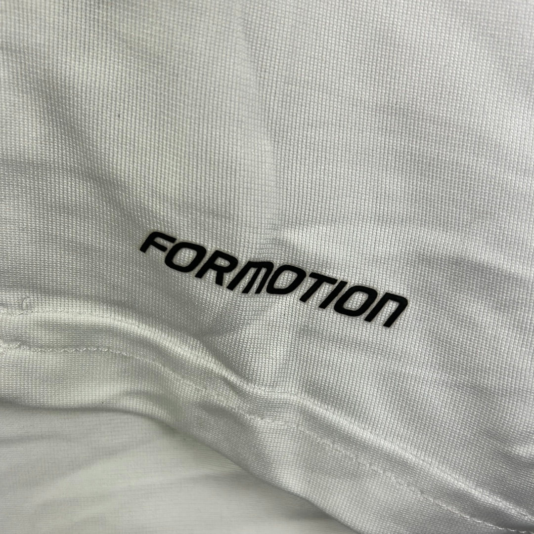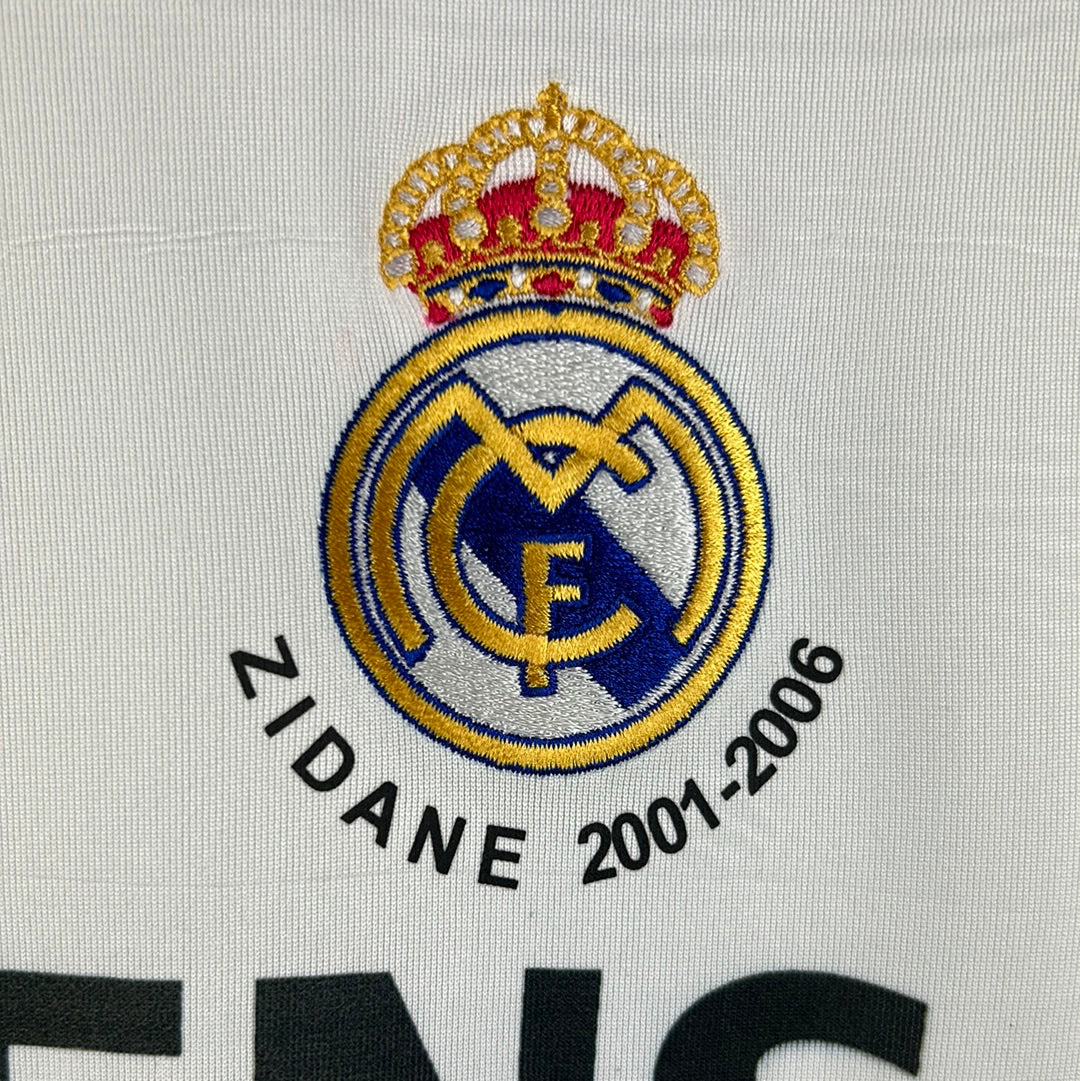 Player Issue Details: Original formation Adidas shirt, correct badges and prints. The Real Madrid badge is embroidered as is the Adidas badge. The 3 stripes on the sleeve are printed. Around the badge, there is a further print that says "ZIDANE 2001-2006". This is correct for Zidane's last match in 2006. The shirt also has a La Lig patch on one sleeve. This has some cracking, most likely caused by storage. There are no other marks or damage on the shirt. This is a collector's item player issue shirt.