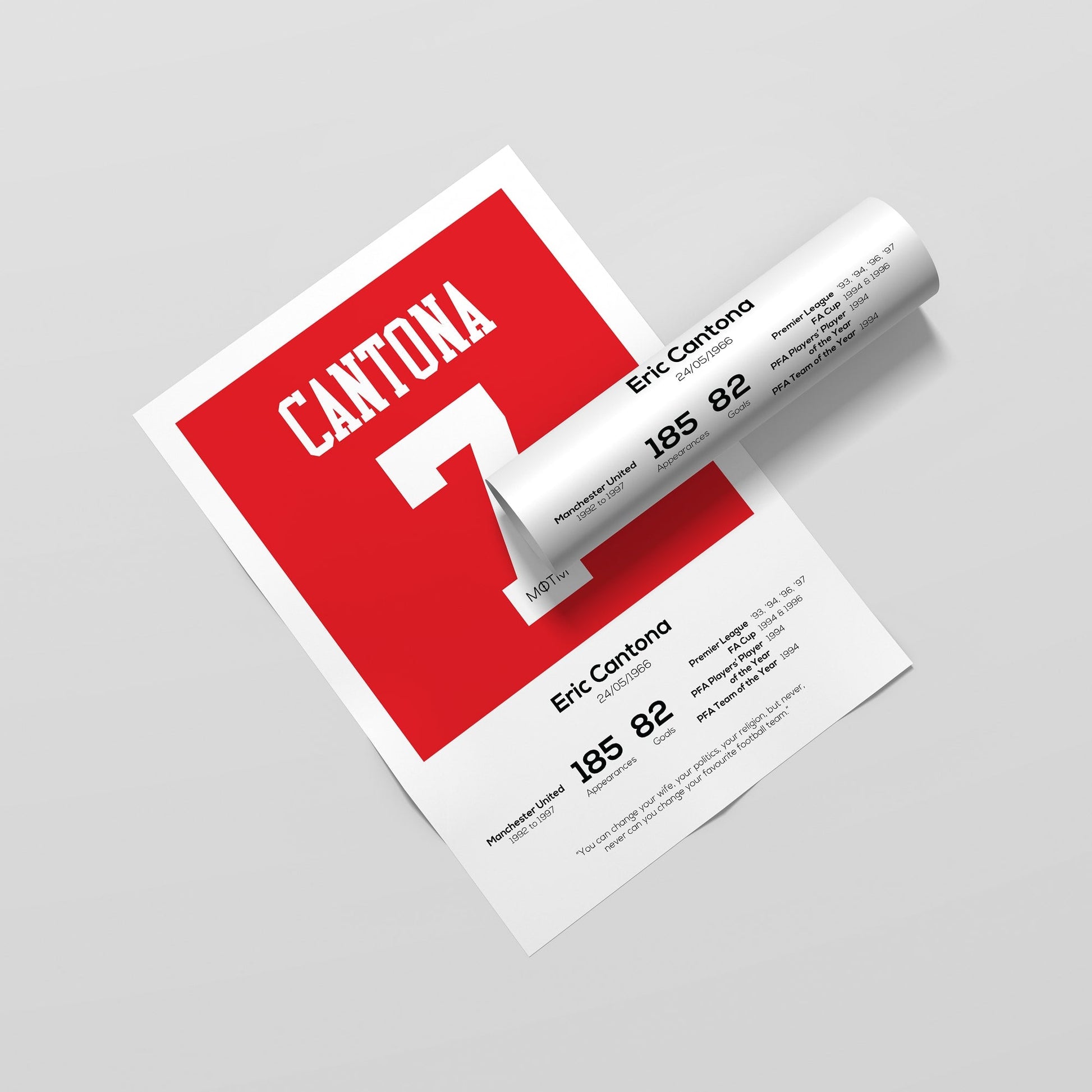 Remember the unforgettable career of cult hero and number 7, Eric Cantona. The enigmatic Frenchman helped transform the club's fortunes, leading them to a first league title in 26 years. Cantona is a united legend and widely regarded as one of the best forwards to ever grace the league and European football. This print is inspired by the 1993 home shirt, which Cantona starred in. This high quality football print is the perfect gift for any Eric Cantona fan.