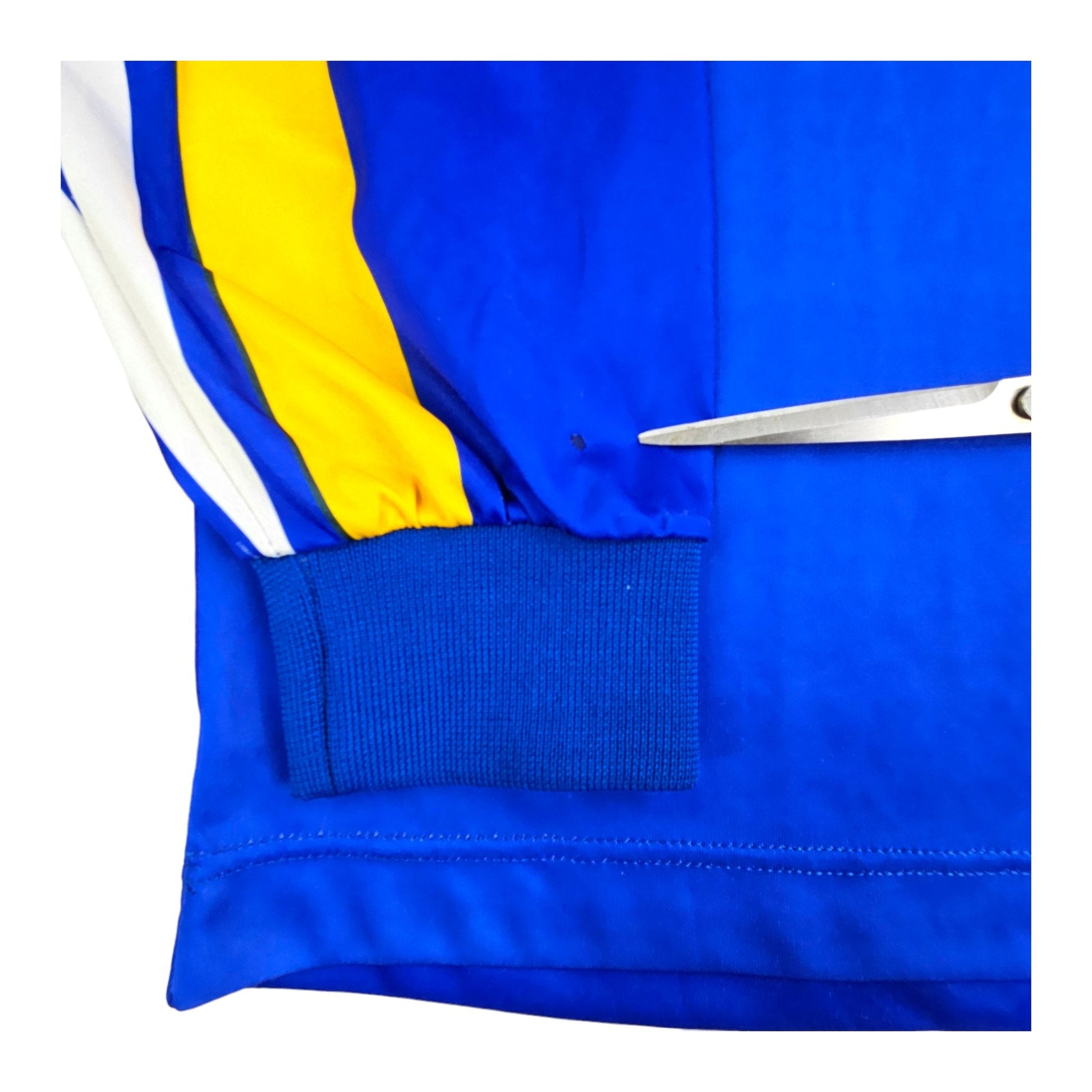 Information:  Official Kappa long sleeve Juventus third football shirt from the 1998/99 season, as worn when 'the Old Lady' finished 7th in Serie A and were knocked out in the quarter finals of the Coppa Italia.  Juventus also reached the semi finals of the Champions League, losing 4-3 on aggregate against eventual winners Manchester United.  This beautiful shirt features the beautifully embroidered scudetto after Juve won its 25th Serie A title the previous season.