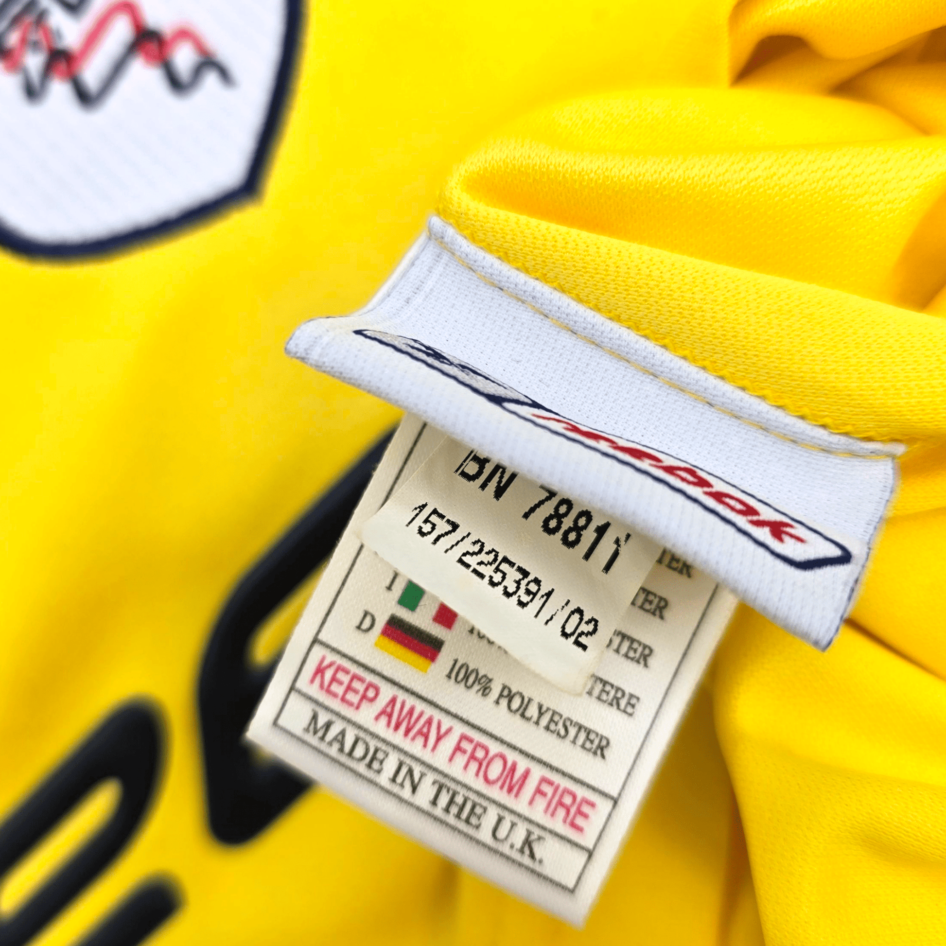 Information: Official Reebok Bolton Wanderers away football shirt, as worn by ‘The Trotters’ during the 2002 to 2004 seasons. The reverse of the shirt boasts the nameset of club legend, Anthony Barness. A fantastic vintage jersey, ideal for a collection of your own or the perfect gift for any football fan.