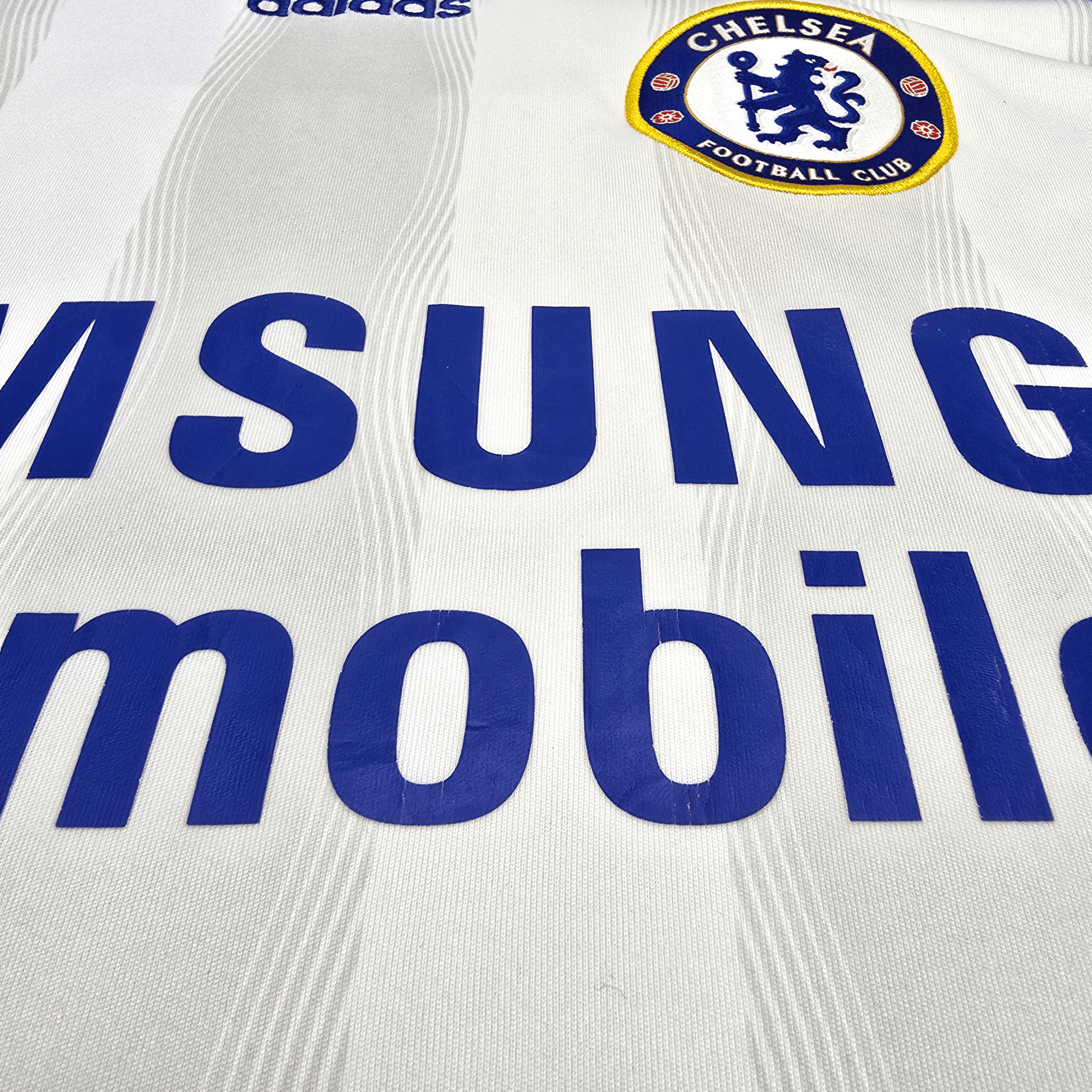 Information: Official Adidas Chelsea away football shirt, as worn by the ‘Blues’ during the 2006/07 season, when the side, under José Mourinho, lifted both the FA Cup and the League Cup while finishing second in the Premier League in another trophy-laden campaign. The reverse of the shirt boasts the nameset of club legend, Andriy Shevchenko. A fantastic vintage jersey, ideal for a collection of your own or the perfect gift for any football fan.