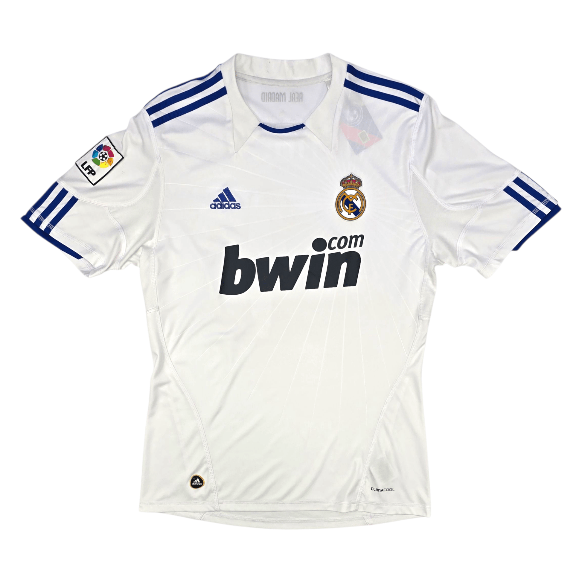 Information: Official Adidas Real Madrid home football shirt, as worn by 'Los Blancos' during the 2010/11 season, when the side lifted the Copa del Rey under José Mourinho after defeating Barcelona in the final. The reverse of the shirt boasts the nameset of club legend, Cristiano Ronaldo. A fantastic jersey, ideal for a collection of your own or the perfect gift for any football fan.