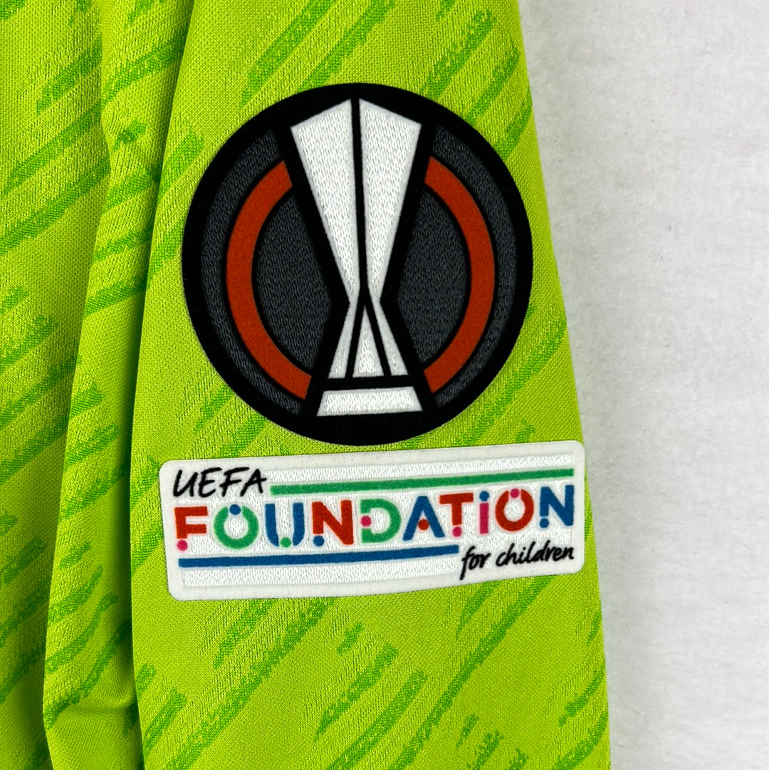 Patches: The shirt has the Europa League and UEFA Foundation For children sleeve patches