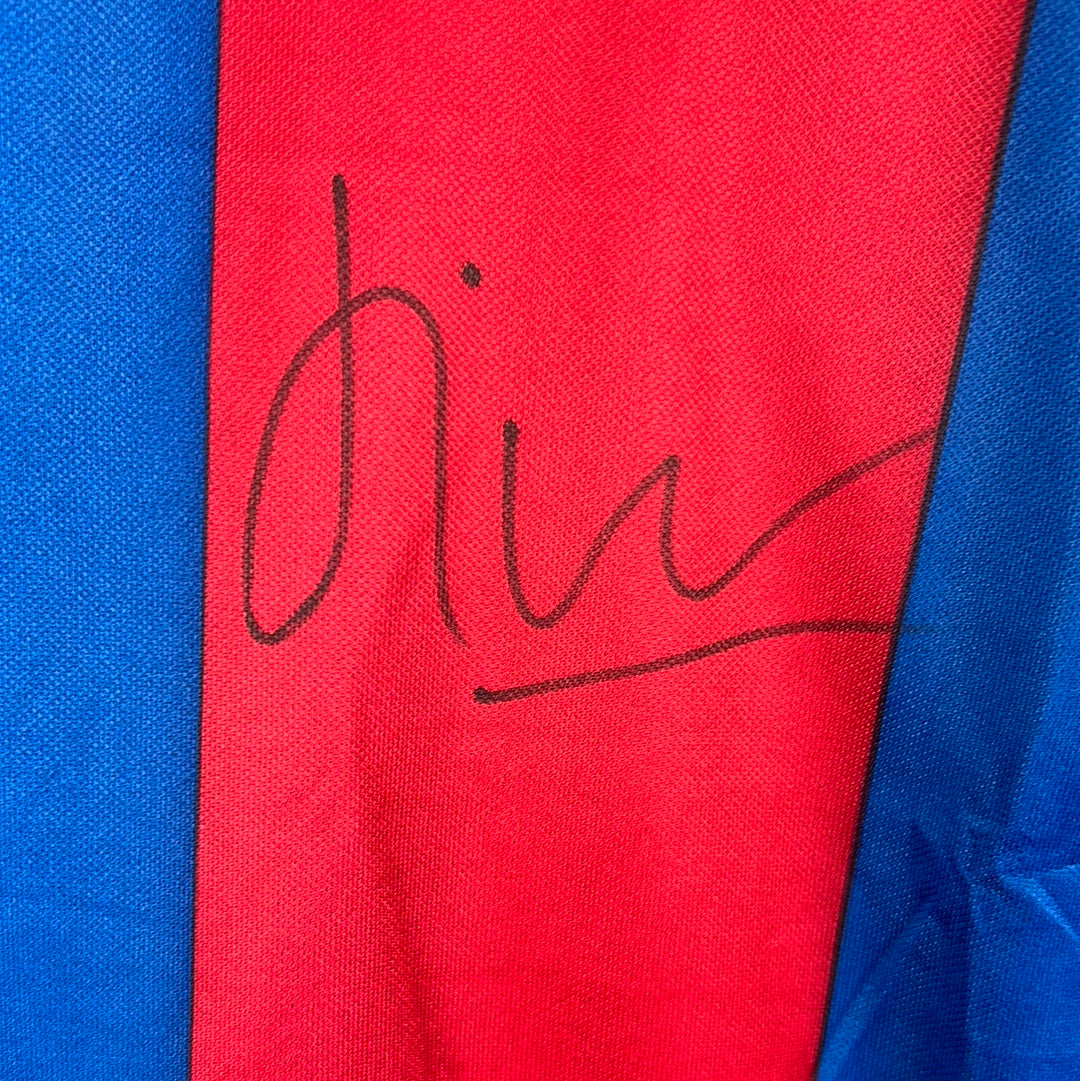 Shirt info: A Barcelona home shirt in the 2002/2003 season. The shirt has been signed by Figo on the front in black marker pen. There is no COA for this shirt. The signature has been checked with others online and appears authentic.